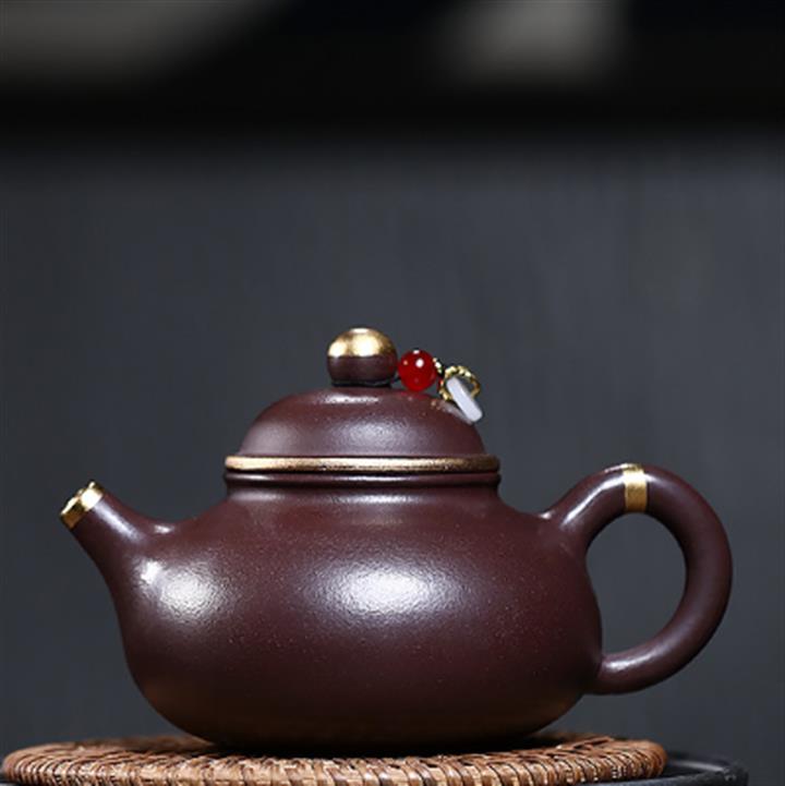 230cc原礦紫泥鑲金容天光素泡茶壺POT9474