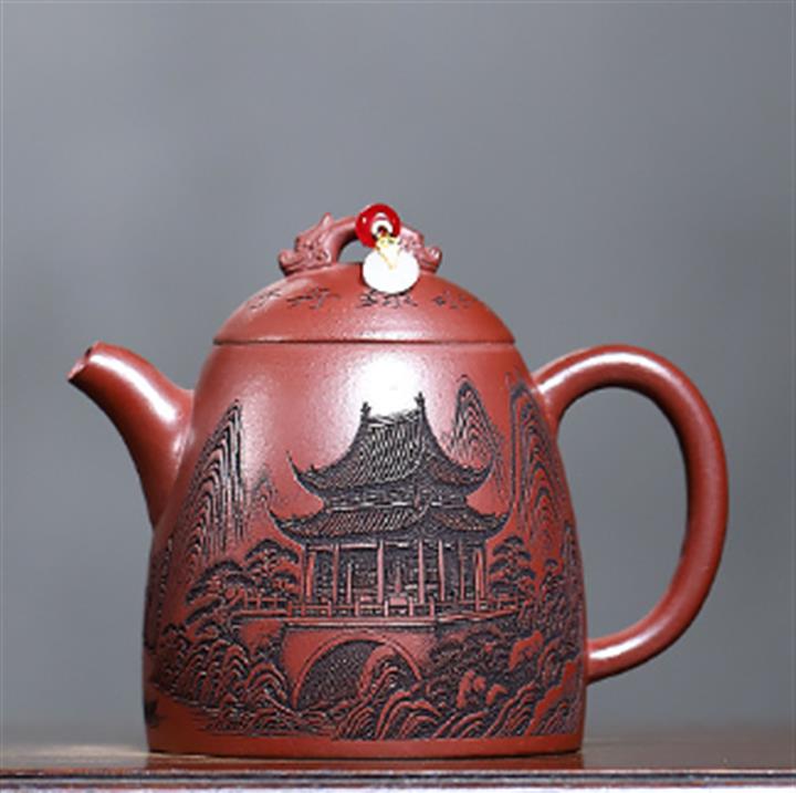 230cc原礦紫泥刻繪山水寒江泡茶壺POT9476