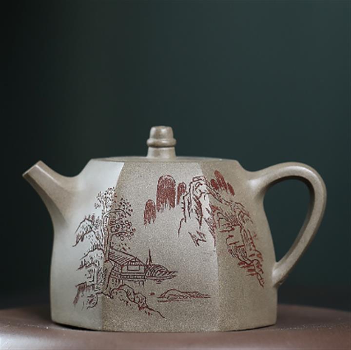300cc原礦蟹殼青六方漢鐸茶壺POT8983