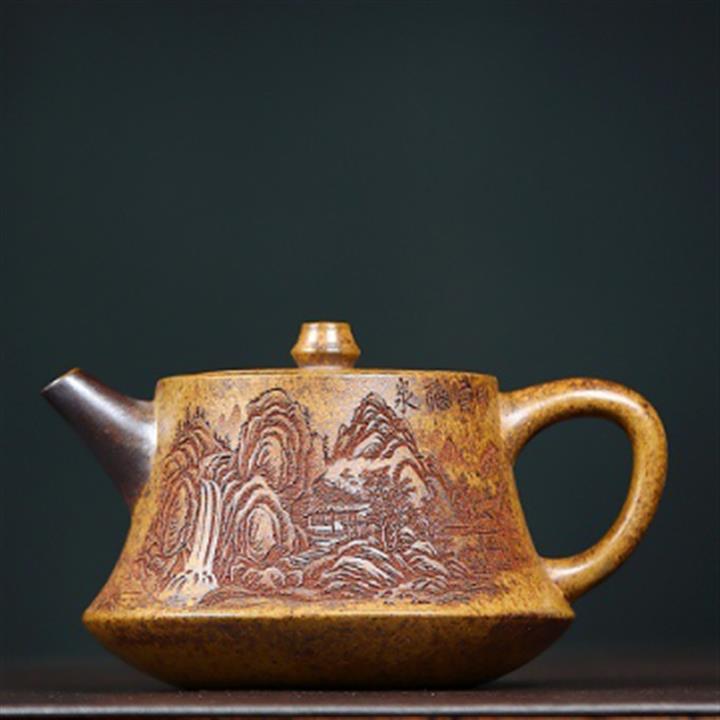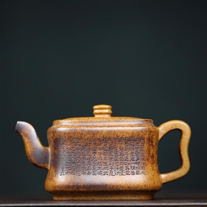 200cc原礦龍骨金砂柴燒金方茶壺POT9241
