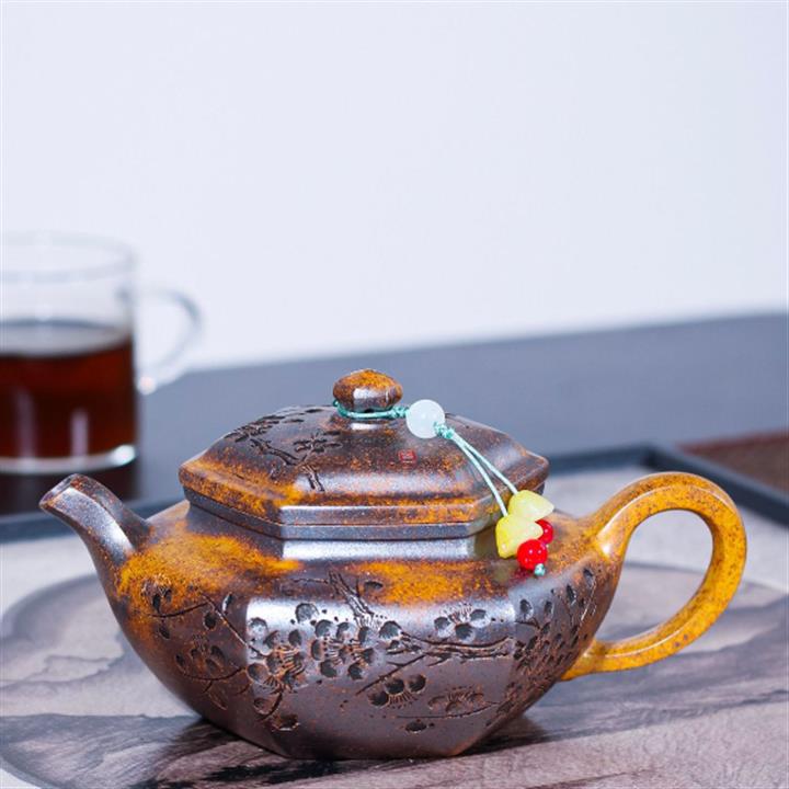 200cc原礦紫朱泥描金漢瓦茶壺POT8468