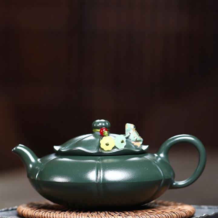 210cc原礦優質綠泥青蛙蓮影茶壺POT9265