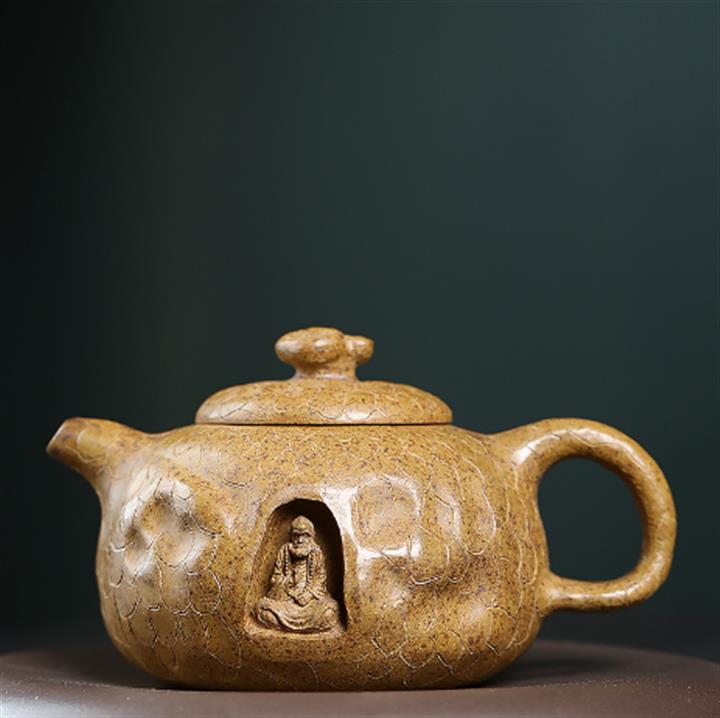340cc原礦龍骨金砂報春-鏤空觀音茶壺POT8965