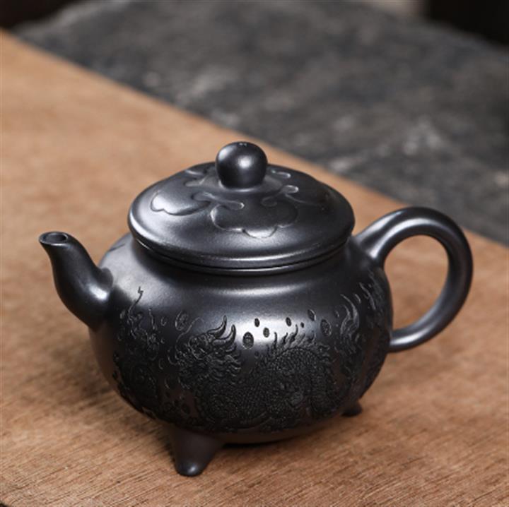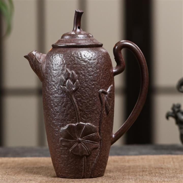 480cc原礦紫泥繪刻荷花汲思茶壺POT8886