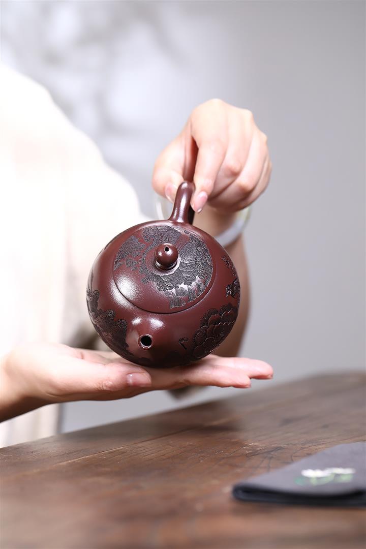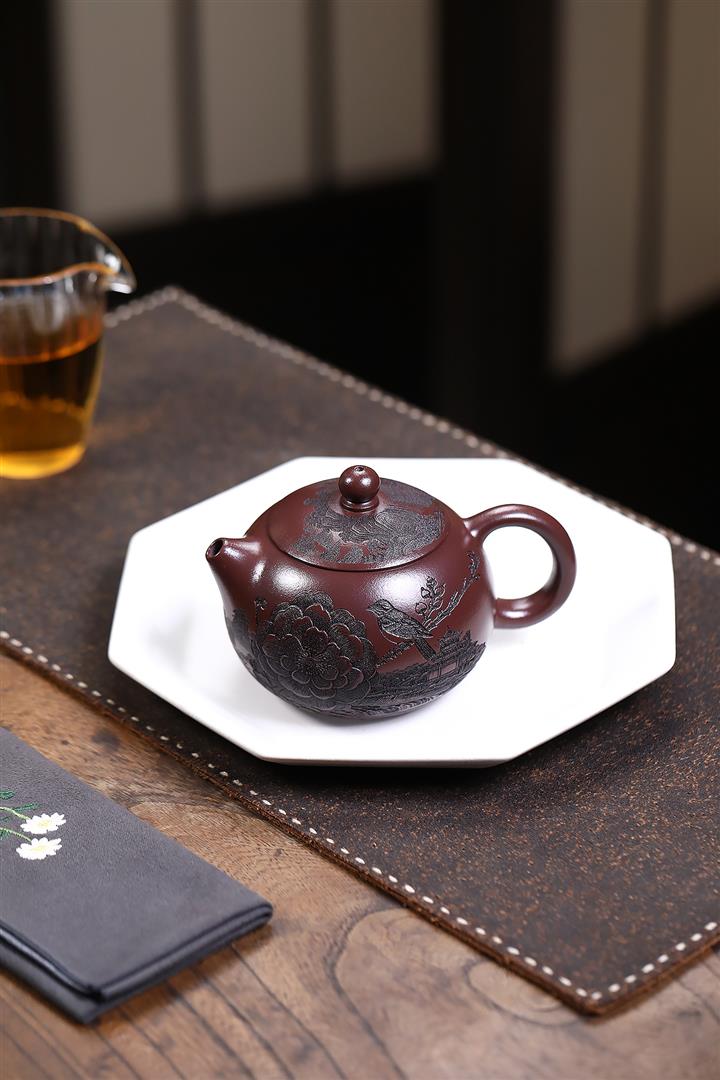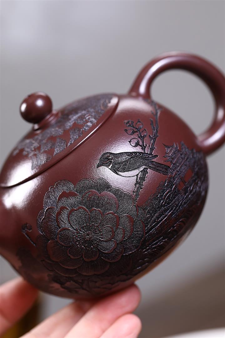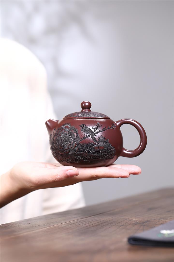 【作品介紹】此款壺形線條流暢,壺把,壺嘴,壺身壹氣呵成栩栩如生,是收藏把玩的好壺,泥料色澤古樸典雅,日久使用,漸露鋒芒,養成變化快,溫潤莊重,用其泡茶,使用的年代久,壺身就溫潤,泡出來的茶湯也就醇郁芳馨。