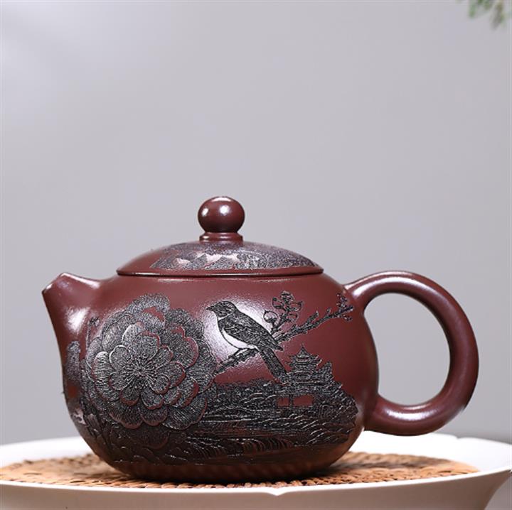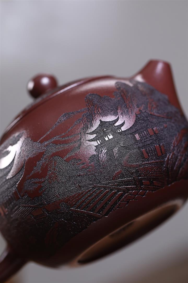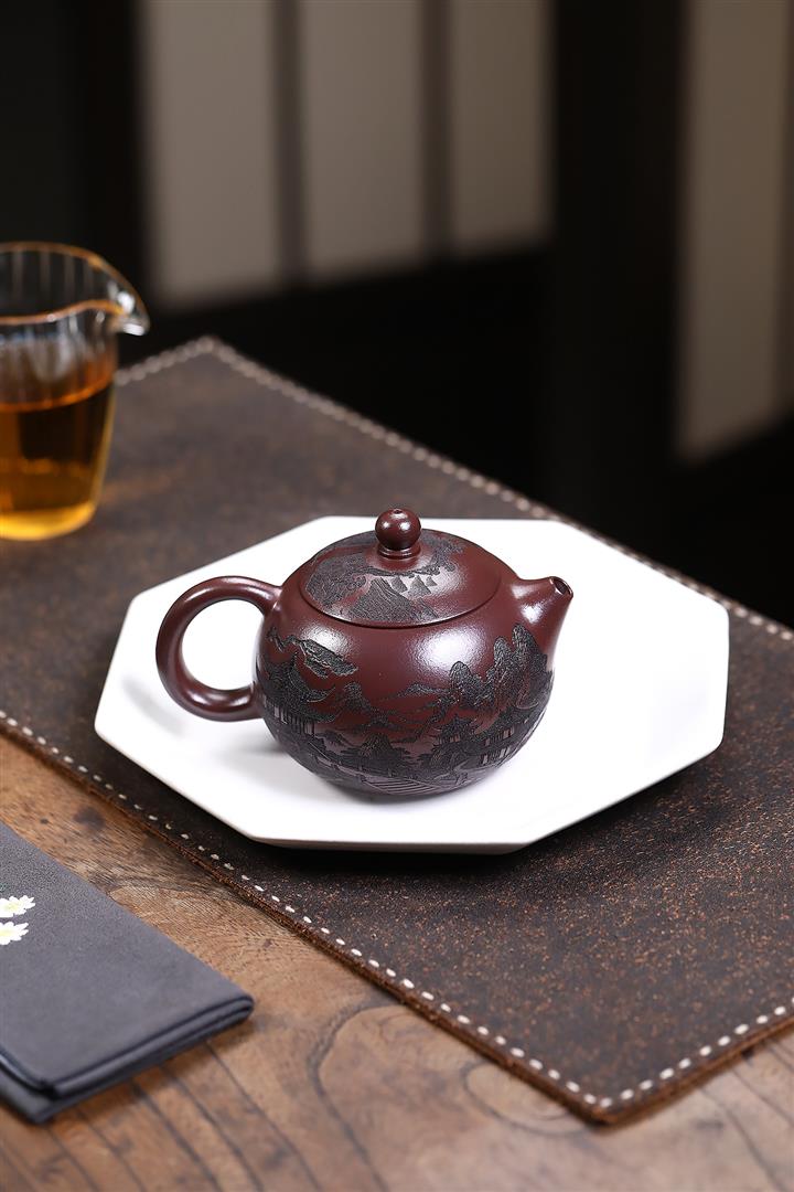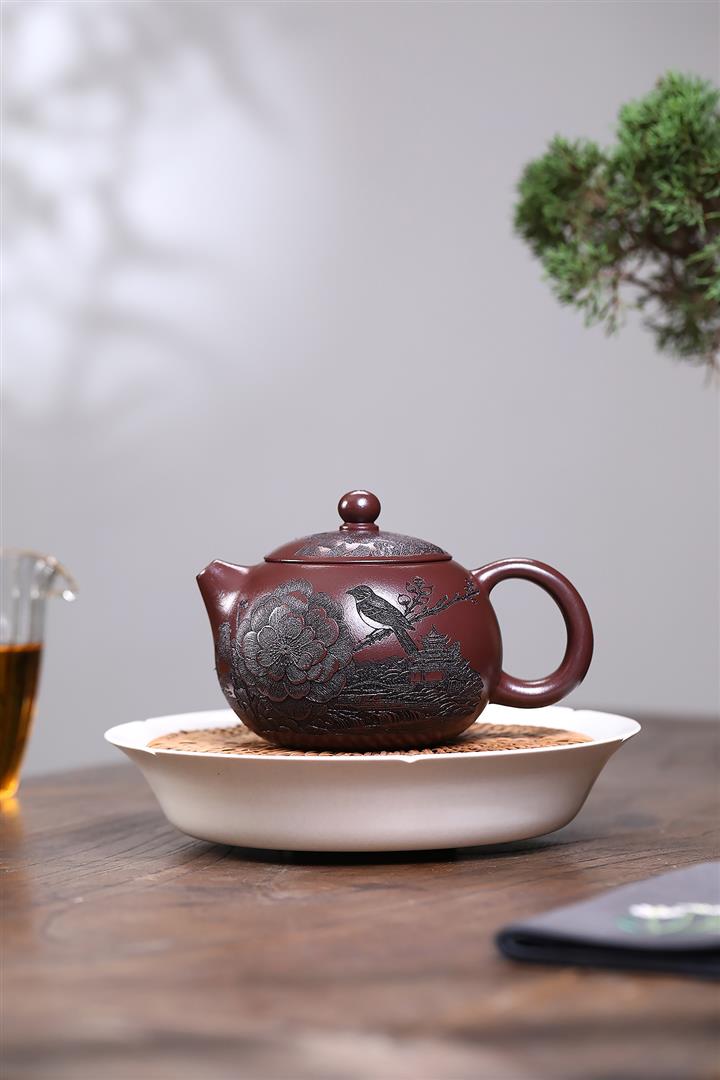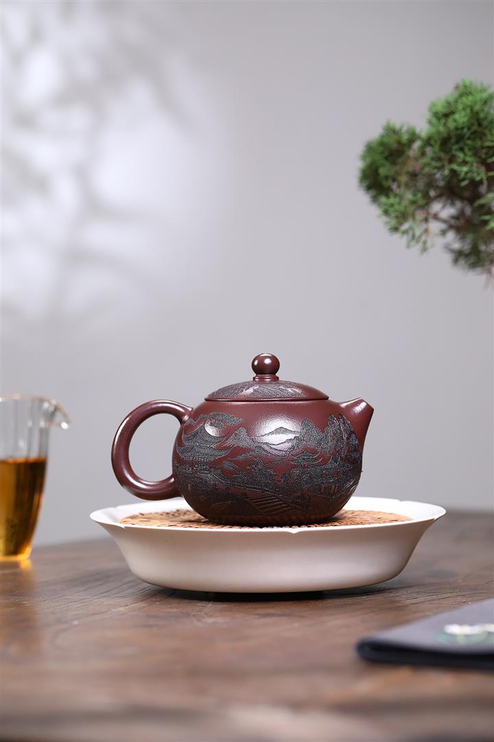 【作品介紹】此款壺形線條流暢,壺把,壺嘴,壺身壹氣呵成栩栩如生,是收藏把玩的好壺,泥料色澤古樸典雅,日久使用,漸露鋒芒,養成變化快,溫潤莊重,用其泡茶,使用的年代久,壺身就溫潤,泡出來的茶湯也就醇郁芳馨。