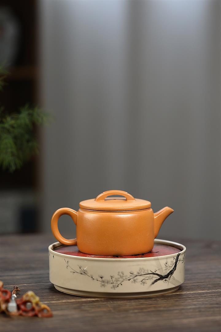 【泥料特點】砂土氣重,似淳實農民,日久使用,漸露鋒芒,養成變化,溫潤莊重。紫砂是壹種雙重氣孔結構的多孔性材質,氣孔微細,密度高。用紫砂壺沏茶,不失原味,且香不渙散,得茶之真香真味。紫砂使用越久,壺身色澤越發光亮照人,氣韻溫雅。紫砂壺長久使用器身會因撫摸擦拭,變得越發溫潤光澤。