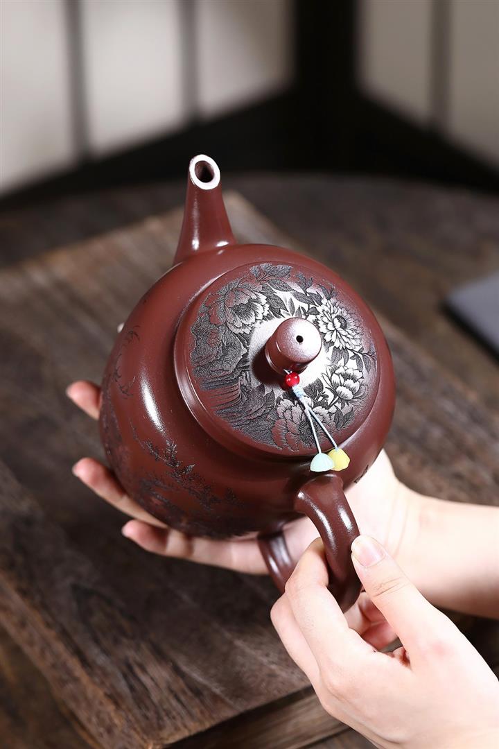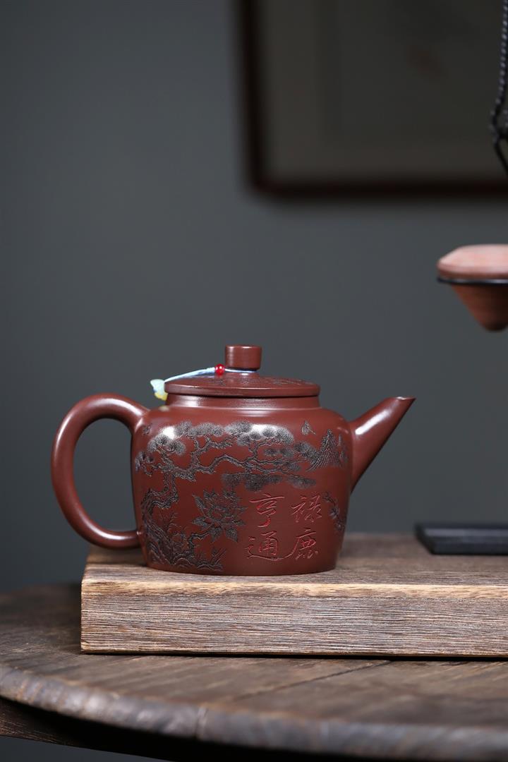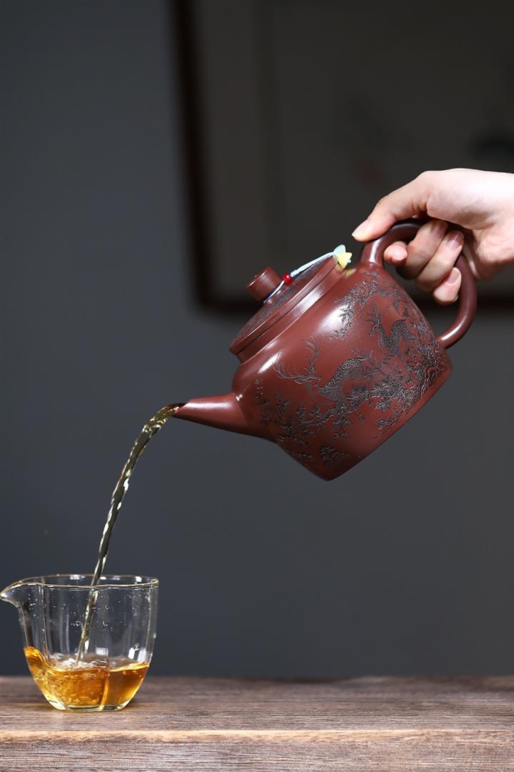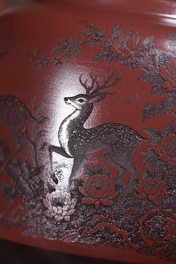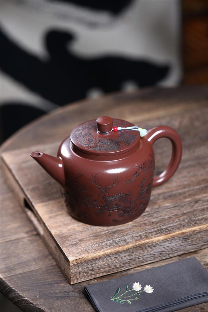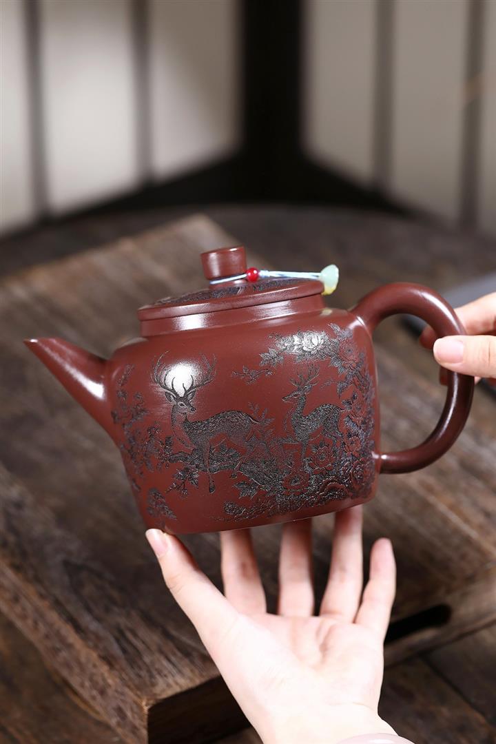 890cc原礦優質紫泥滿刻雙鹿迎瑞壺POT8155