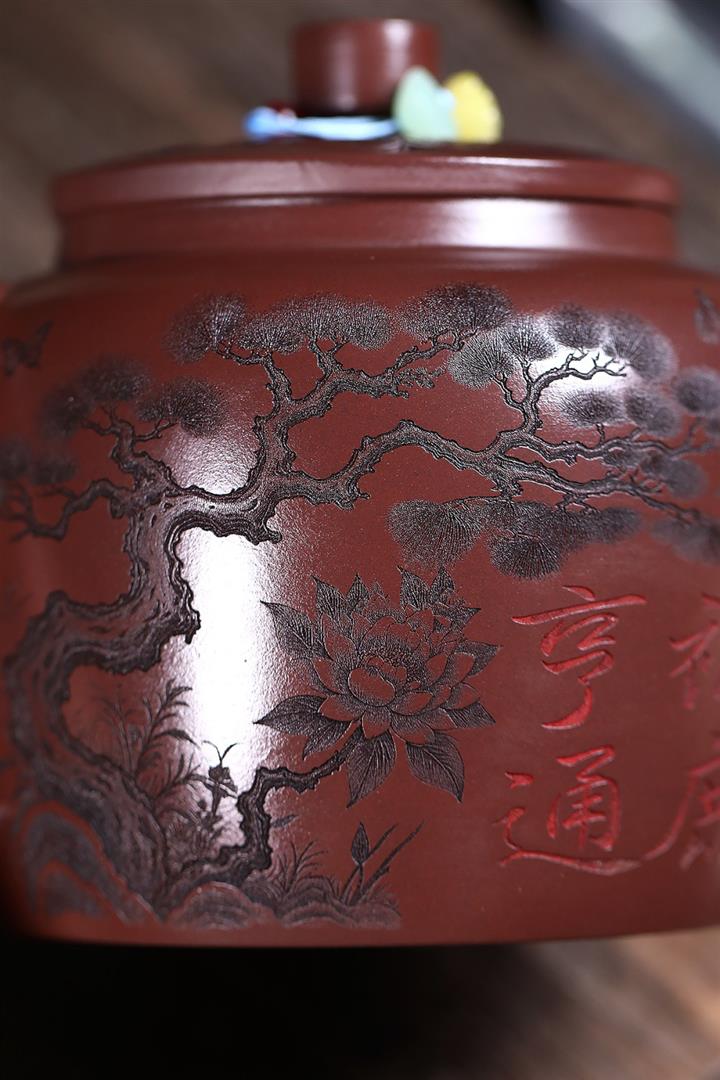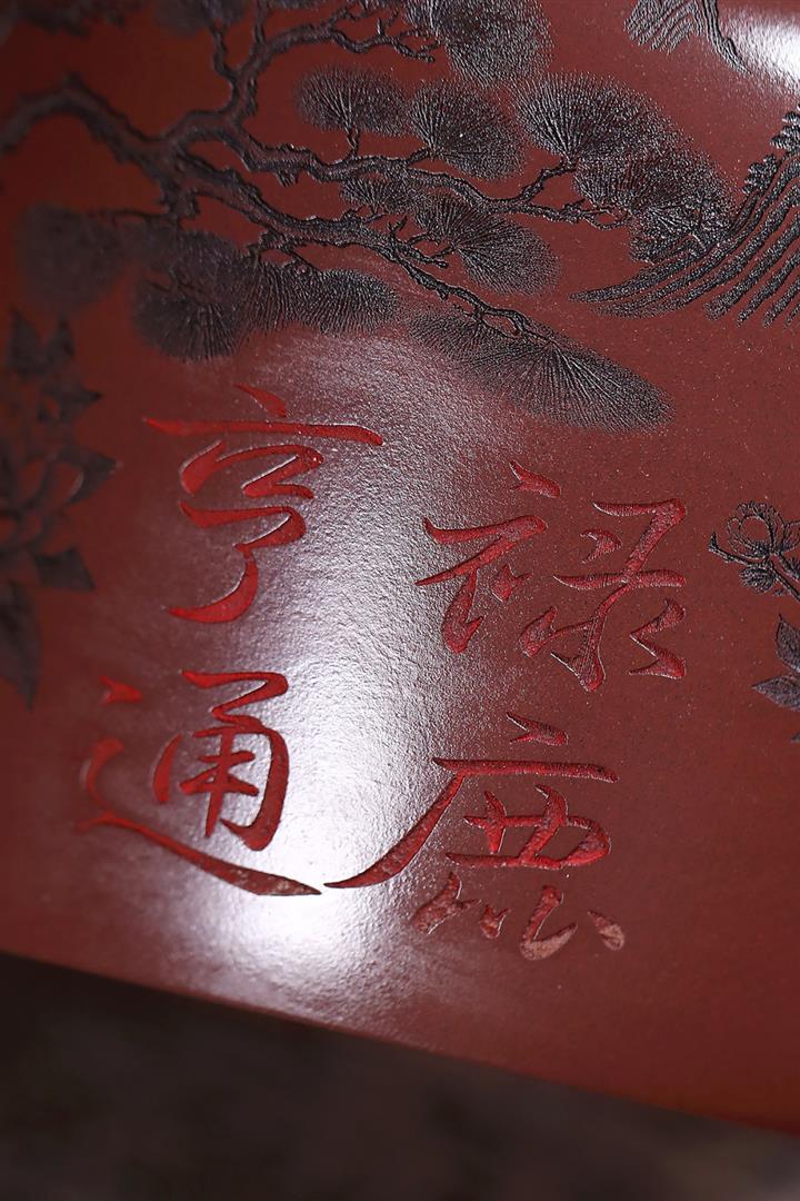 六方宮燈原礦龍骨金砂手刻紫砂壺工堂pot3868