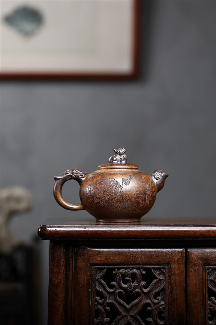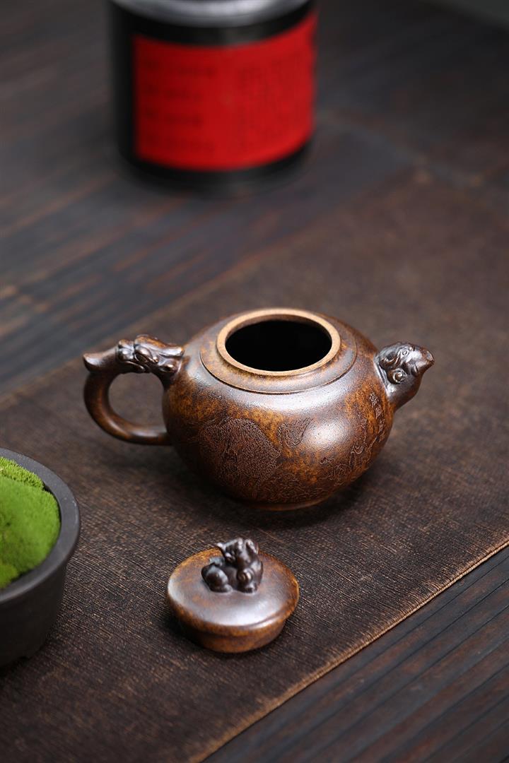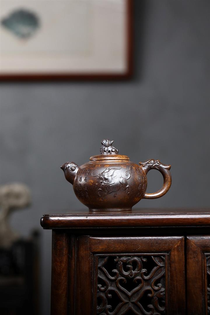 350cc原礦段泥高溫燒燒麒麟獻瑞茶壺POT8164