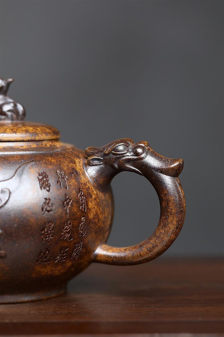 原礦老紫泥雙龍戲珠茶壺POT7466