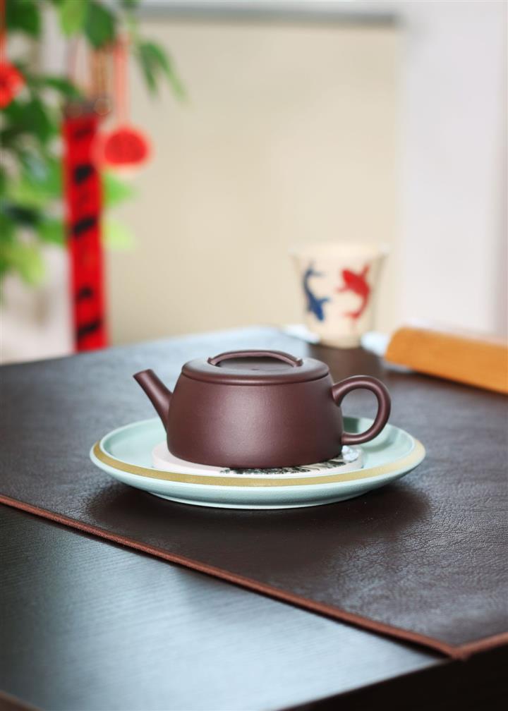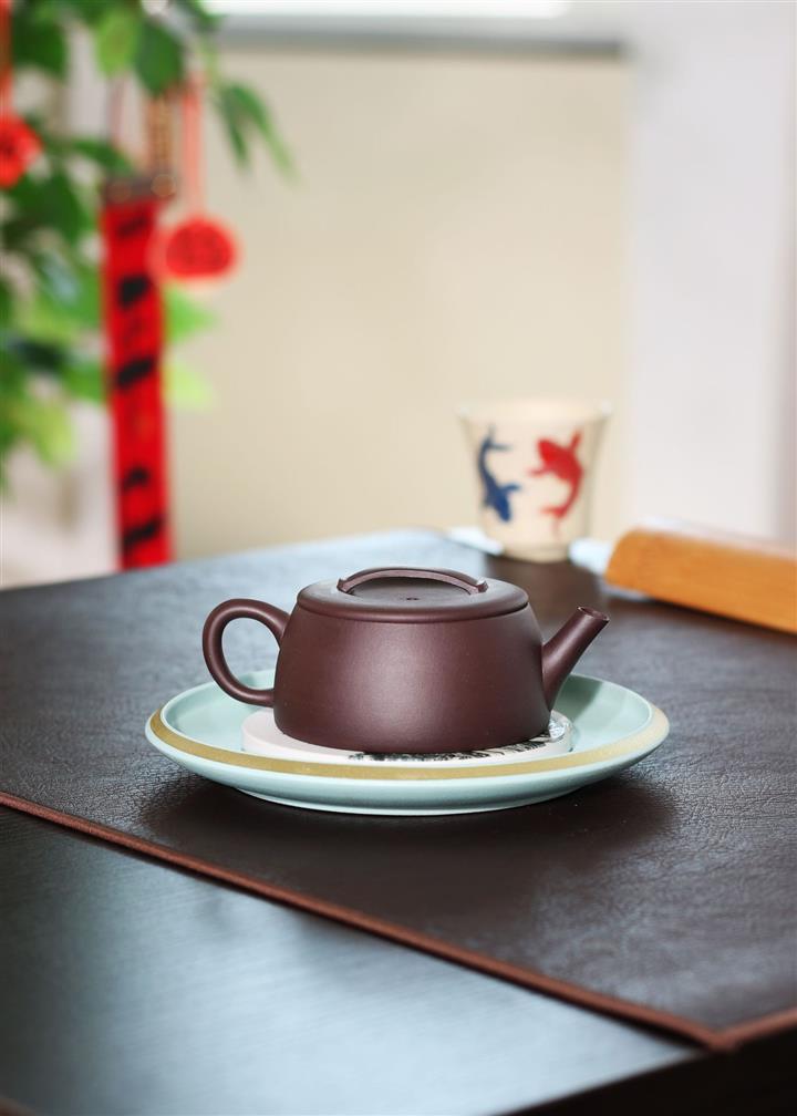 革紫泥文錦漢瓦紫砂壺POT5461