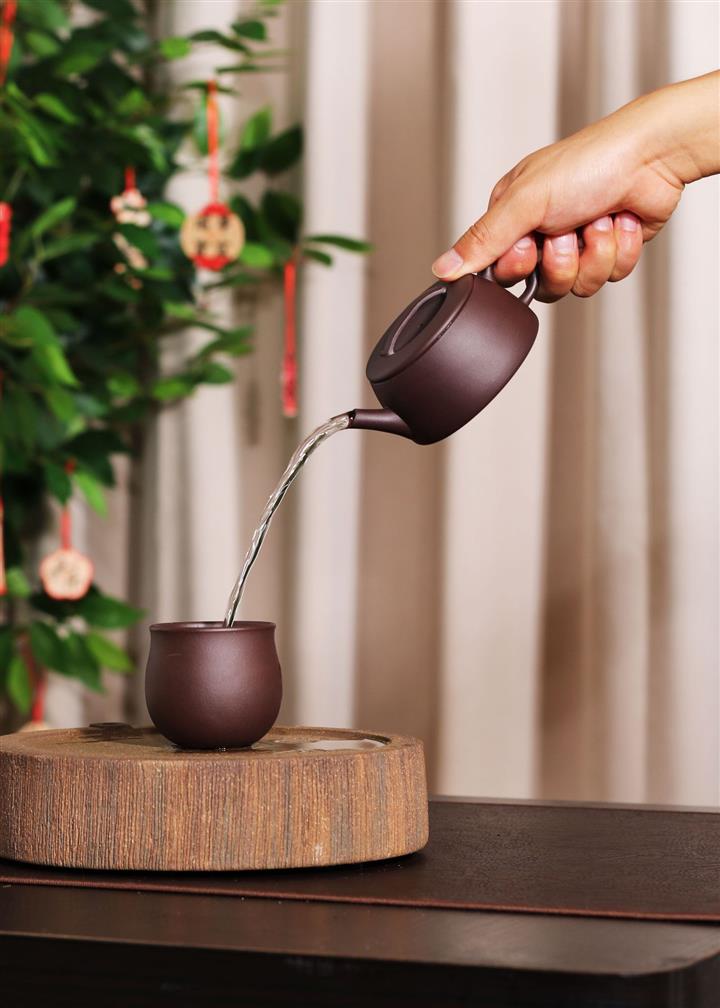 【泥料特點】砂土氣重,似淳實農民,日久使用,漸露鋒芒,養成變化,溫潤莊重。紫砂是壹種雙重氣孔結構的多孔性材質,氣孔微細,密度高。用紫砂壺沏茶,不失原味,且香不渙散,得茶之真香真味。紫砂使用越久,壺身色澤越發光亮照人,氣韻溫雅。紫砂壺長久使用器身會因撫摸擦拭,變得越發溫潤光澤。