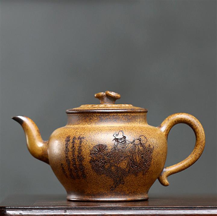 【作品介紹】此款壺形線條流暢,壺把,壺嘴,壺身壹氣呵成栩栩如生,是收藏把玩的好壺,泥料色澤古樸典雅,日久使用,漸露鋒芒,養成變化快,溫潤莊重,用其泡茶,使用的年代久,壺身就溫潤,泡出來的茶湯也就醇郁芳馨。
