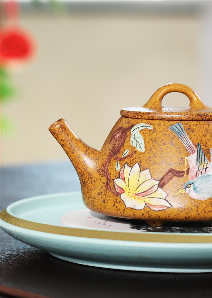 【泥料特點】砂土氣重,似淳實農民,日久使用,漸露鋒芒,養成變化,溫潤莊重。紫砂是壹種雙重氣孔結構的多孔性材質,氣孔微細,密度高。用紫砂壺沏茶,不失原味,且香不渙散,得茶之真香真味。紫砂使用越久,壺身色澤越發光亮照人,氣韻溫雅。紫砂壺長久使用器身會因撫摸擦拭,變得越發溫潤光澤。