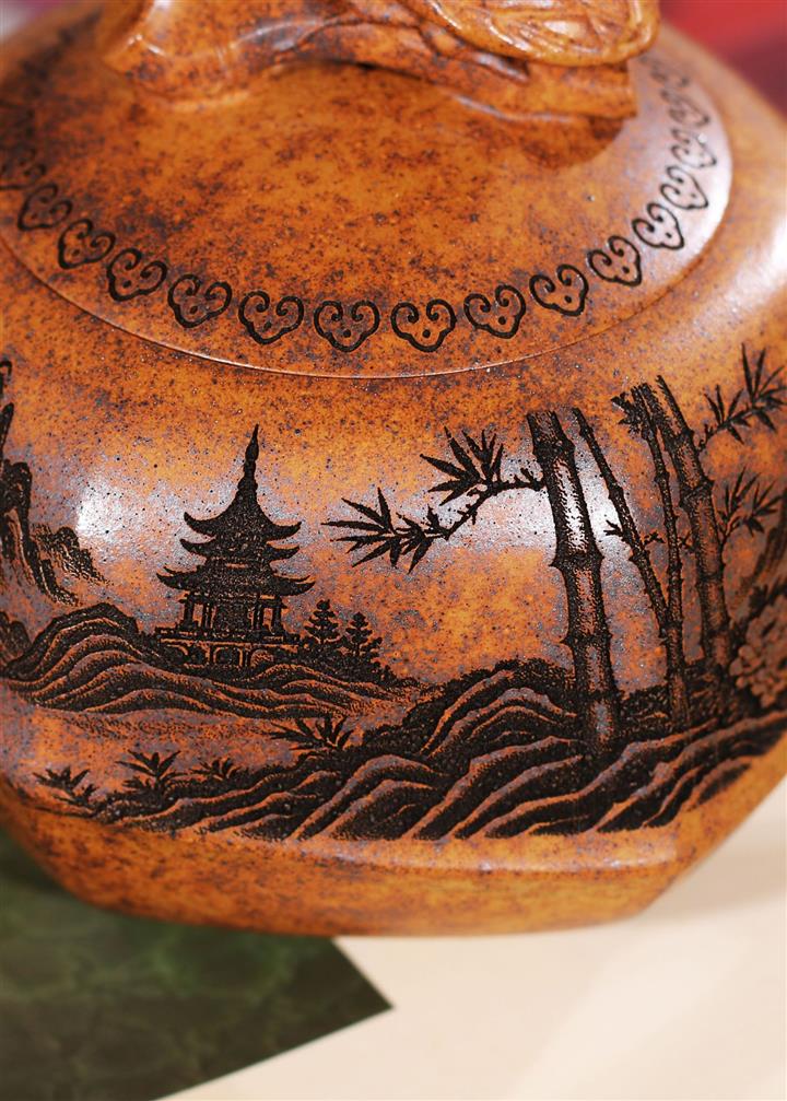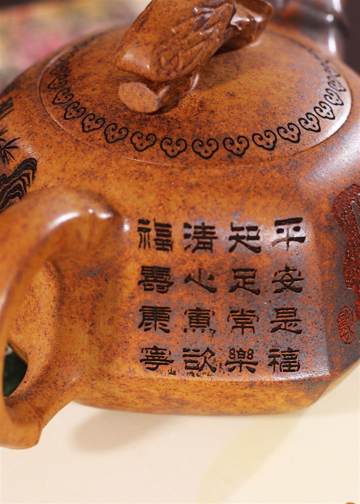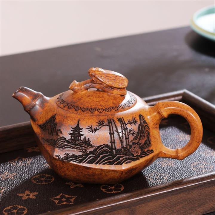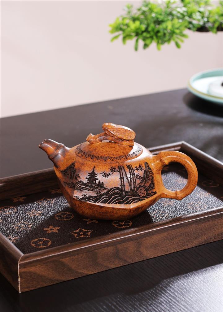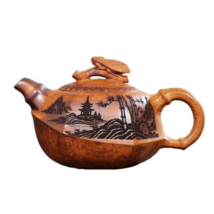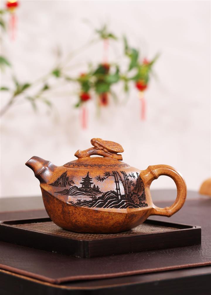 270cc原礦高溫沈香泥柴燒竹影茶壺POT8132