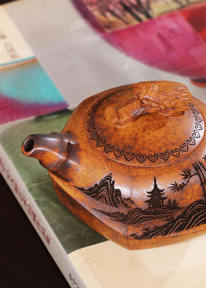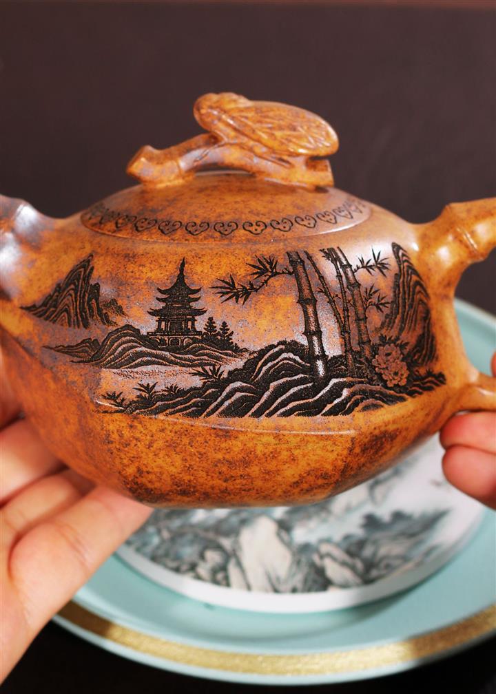 200cc原礦段泥字畫壹片瓦茶壺POT8126