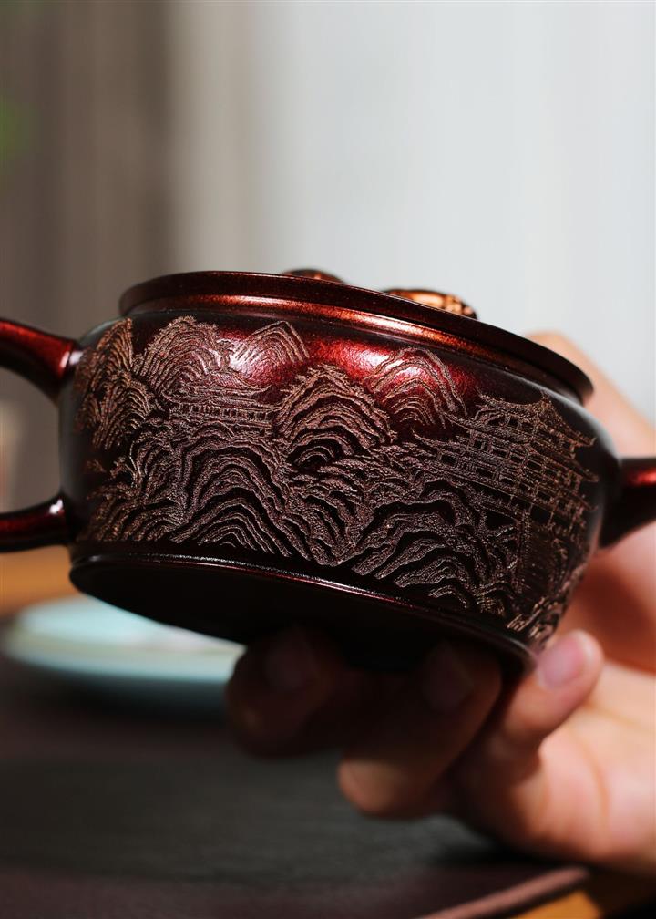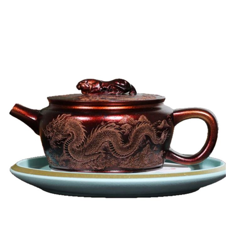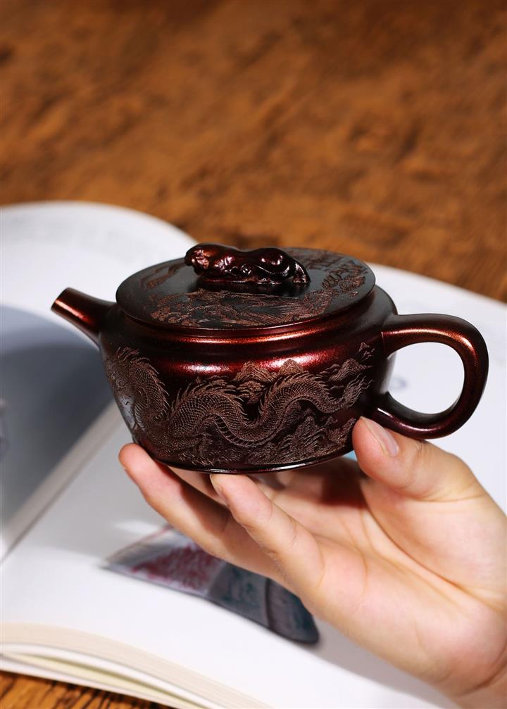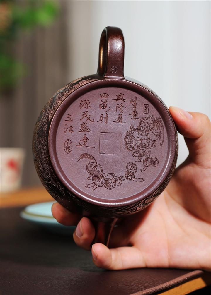 【作品介紹】此款壺形線條流暢,壺把,壺嘴,壺身壹氣呵成栩栩如生,是收藏把玩的好壺,泥料色澤古樸典雅,日久使用,漸露鋒芒,養成變化快,溫潤莊重,用其泡茶,使用的年代久,壺身就溫潤,泡出來的茶湯也就醇郁芳馨。