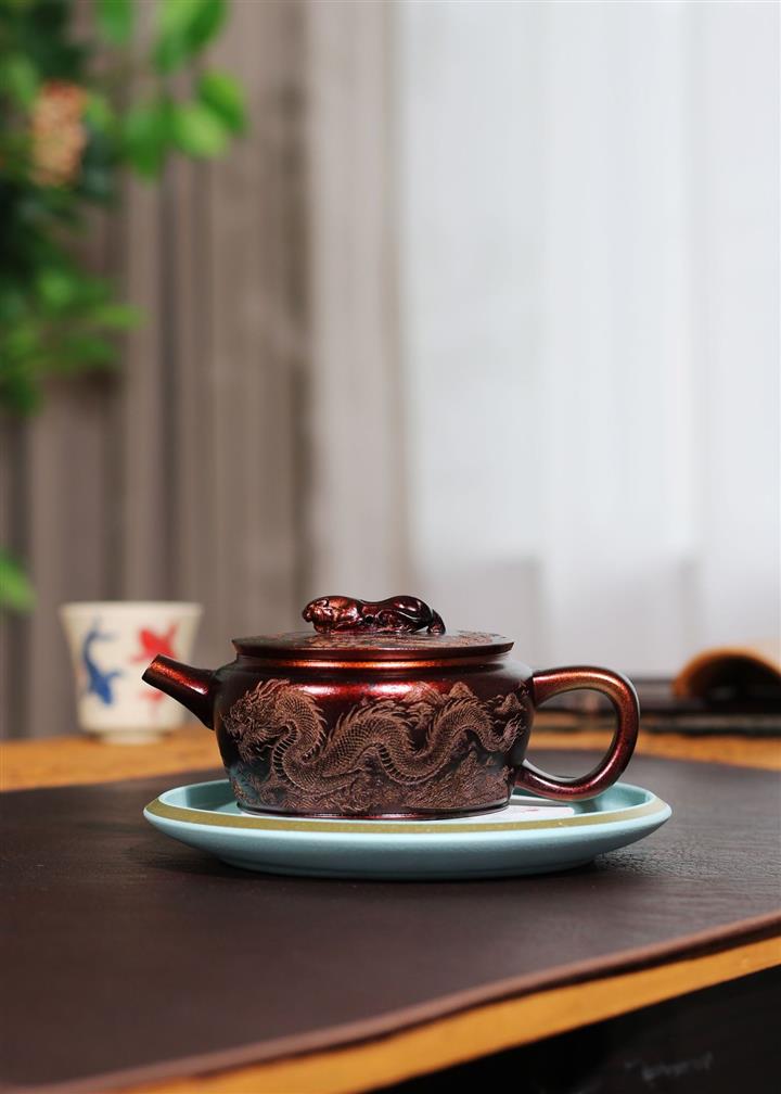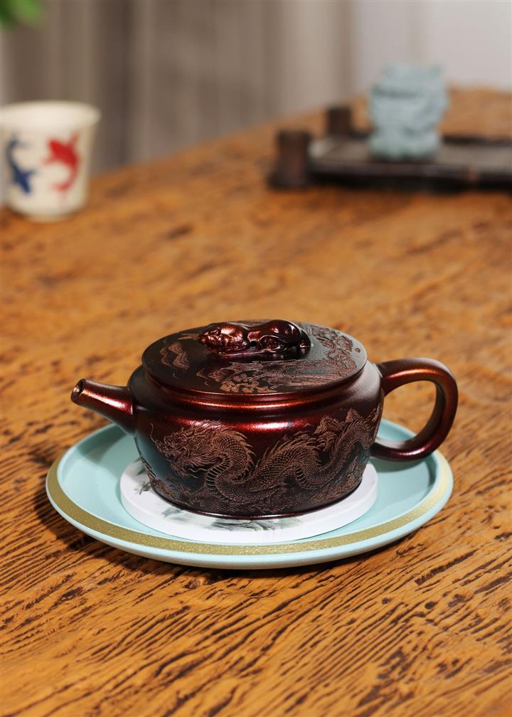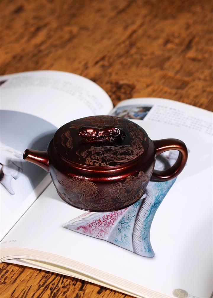 【泥料特點】砂土氣重,似淳實農民,日久使用,漸露鋒芒,養成變化,溫潤莊重。紫砂是壹種雙重氣孔結構的多孔性材質,氣孔微細,密度高。用紫砂壺沏茶,不失原味,且香不渙散,得茶之真香真味。紫砂使用越久,壺身色澤越發光亮照人,氣韻溫雅。紫砂壺長久使用器身會因撫摸擦拭,變得越發溫潤光澤。