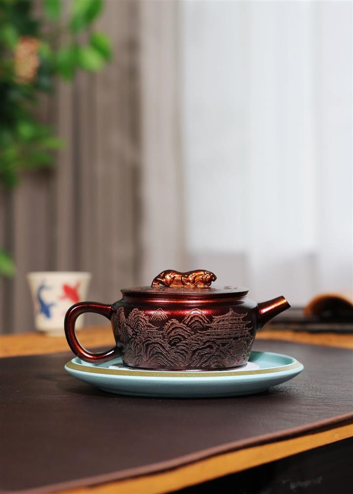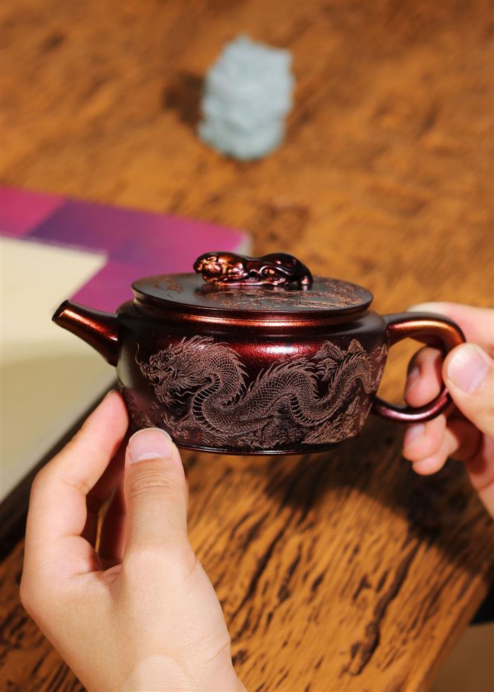 150cc原礦紫泥純手工描金婉玉茶壺POT8447