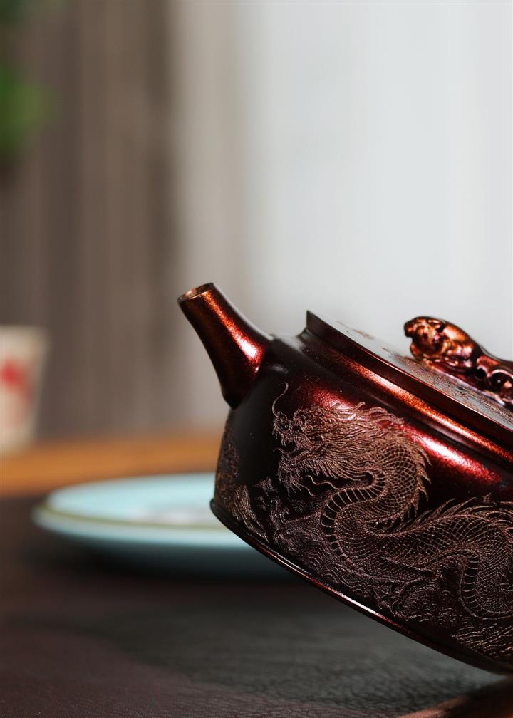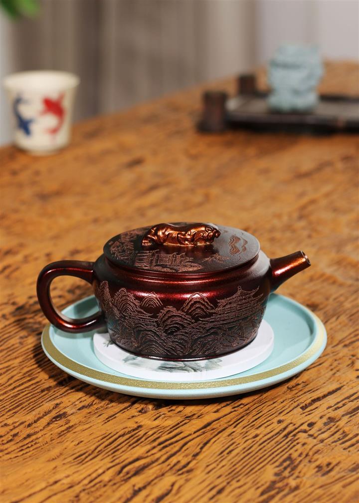 240cc原礦紫泥貝殼燒伏虎漢瓦茶壺POT8212