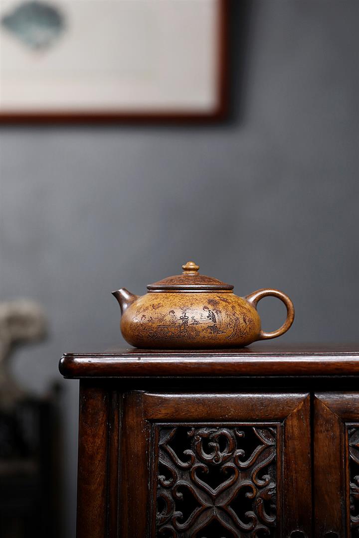 【作品介紹】此款壺形線條流暢,壺把,壺嘴,壺身壹氣呵成栩栩如生,是收藏把玩的好壺,泥料色澤古樸典雅,日久使用,漸露鋒芒,養成變化快,溫潤莊重,用其泡茶,使用的年代久,壺身就溫潤,泡出來的茶湯也就醇郁芳馨。