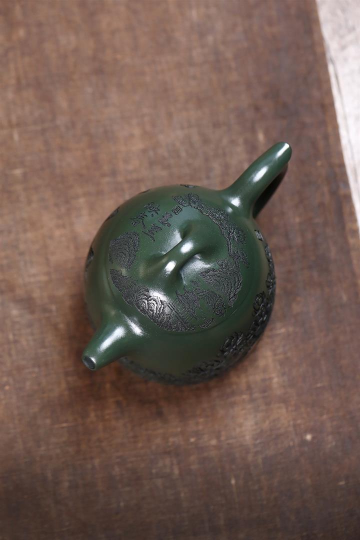 400cc原礦優質綠泥春山疊翠秦權壺POT8236