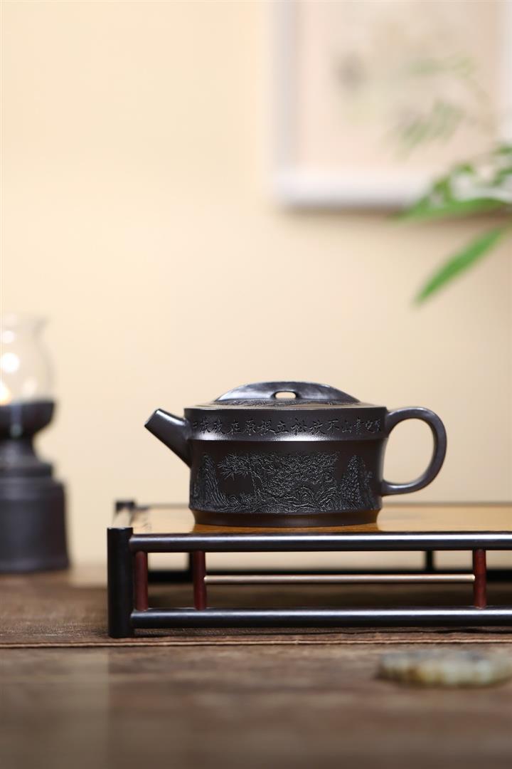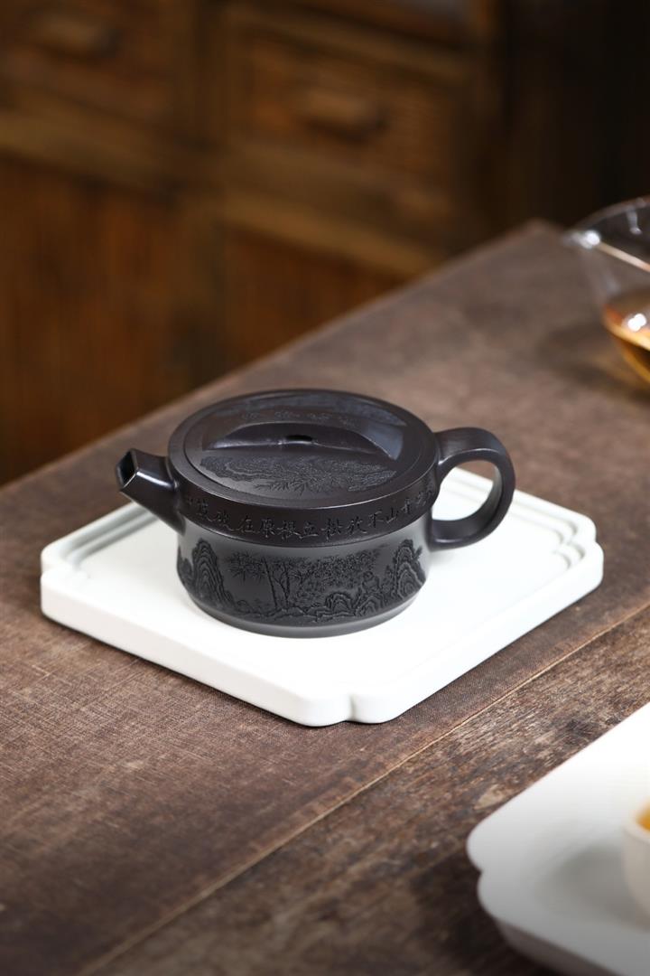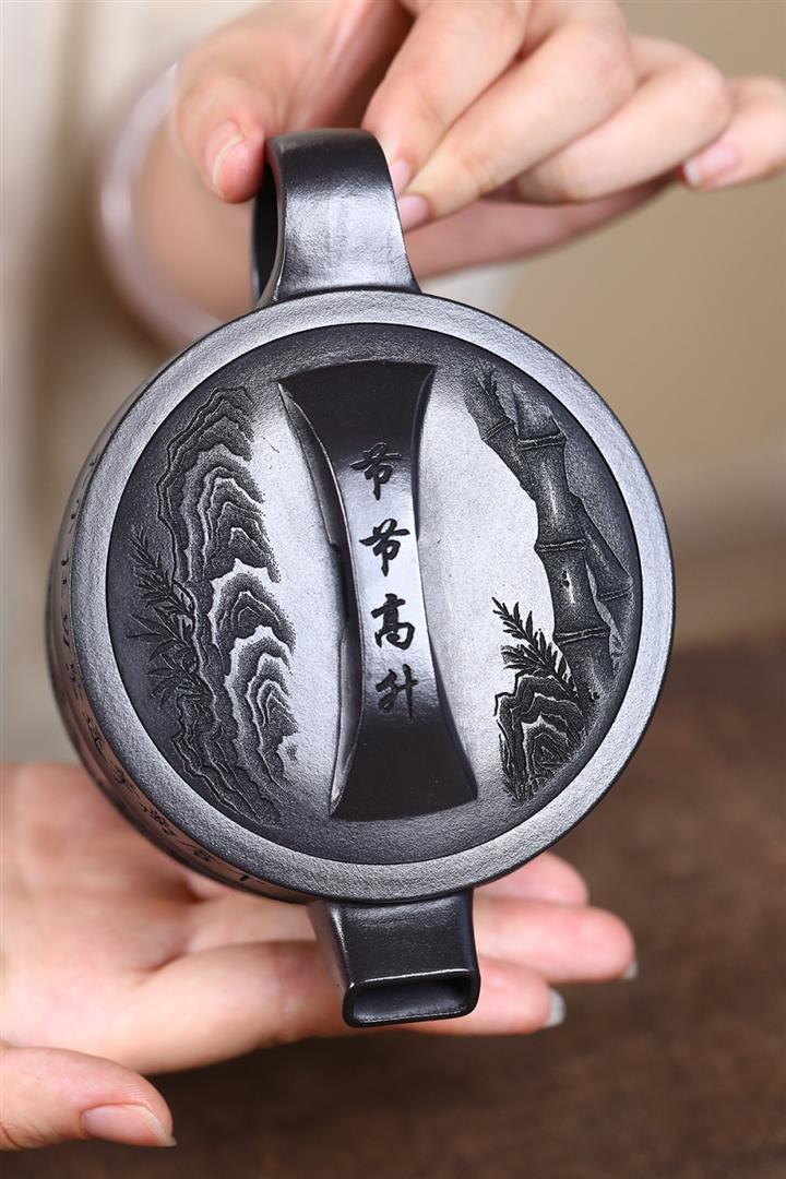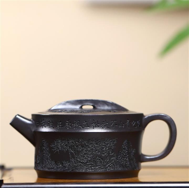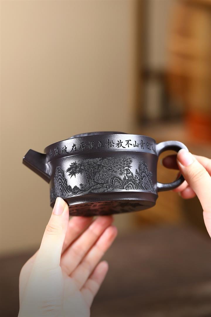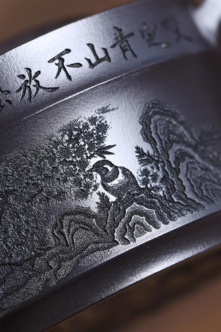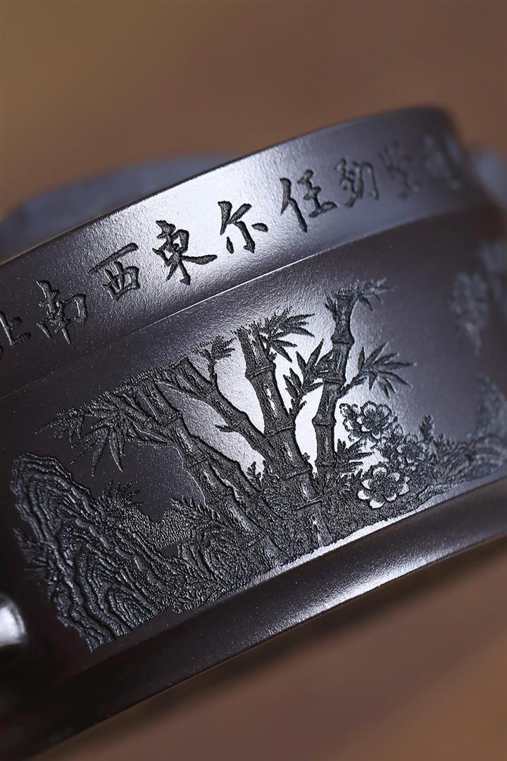 白段手繪刻繪秋水壺功夫泡茶壺紫砂壺 pot3388