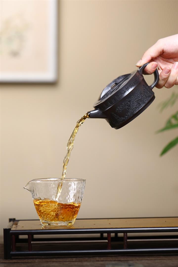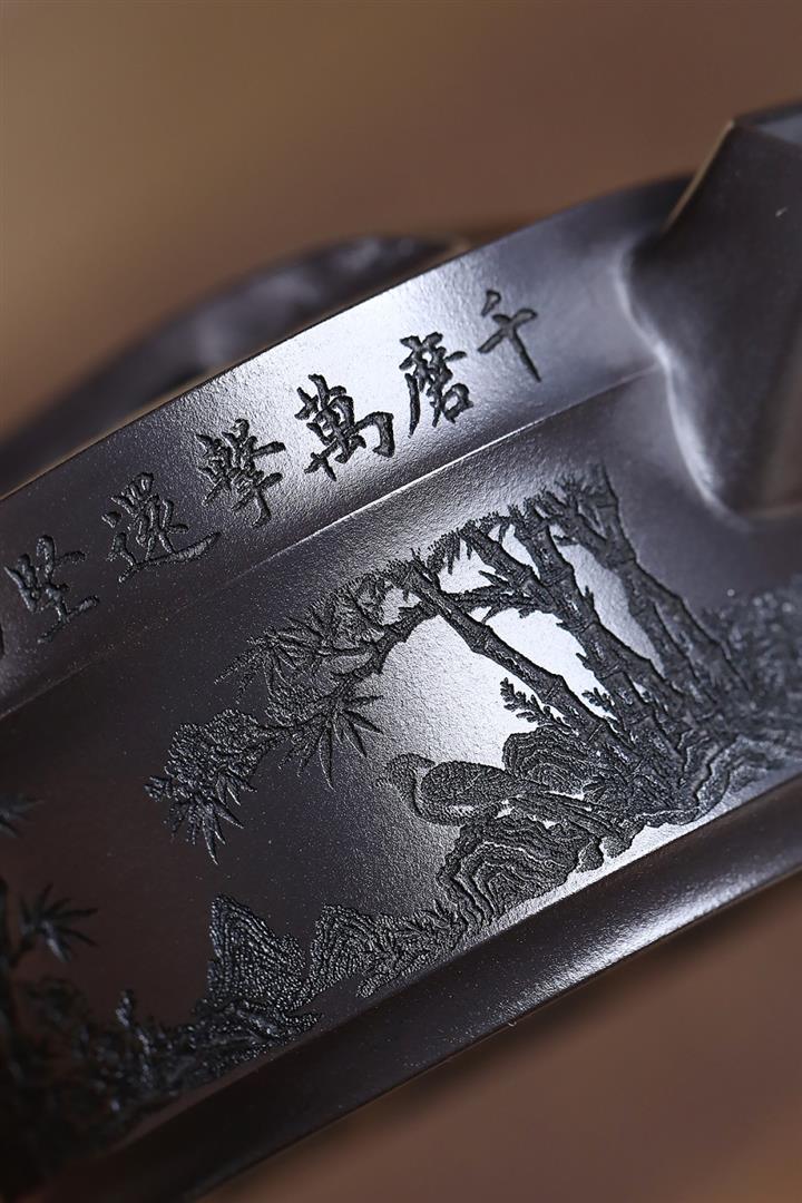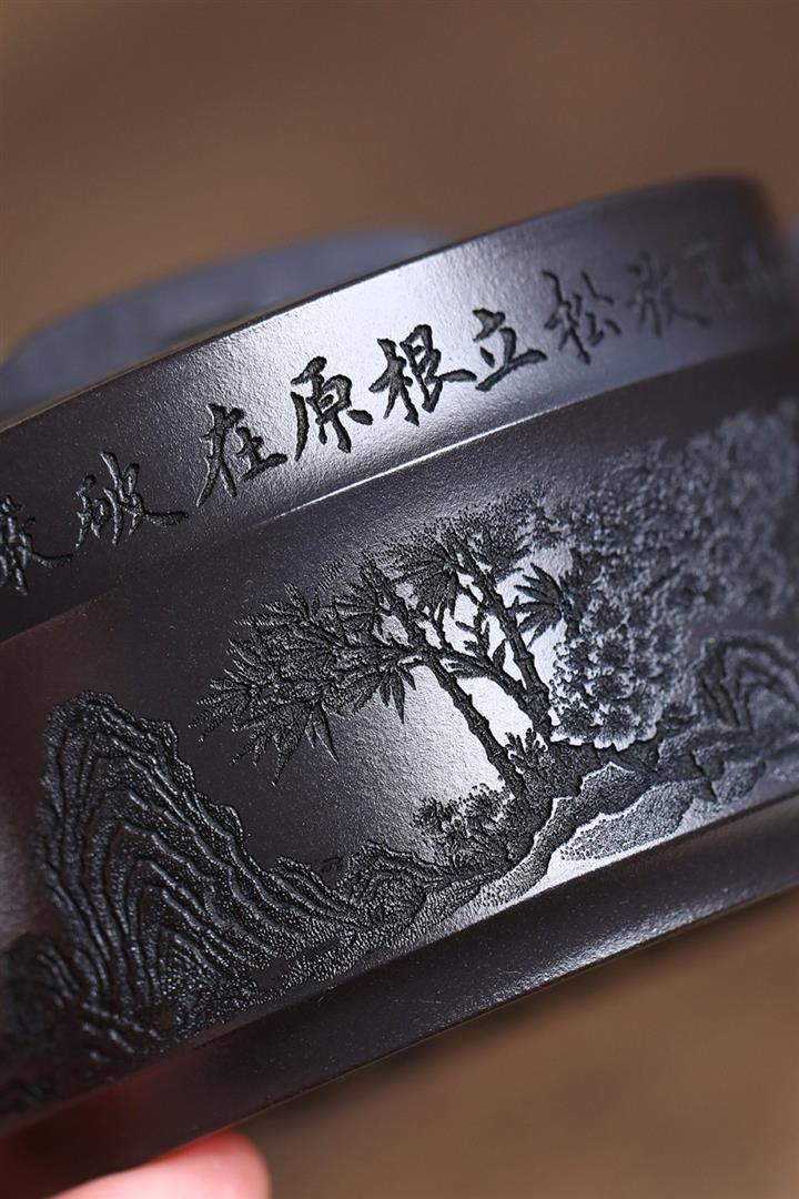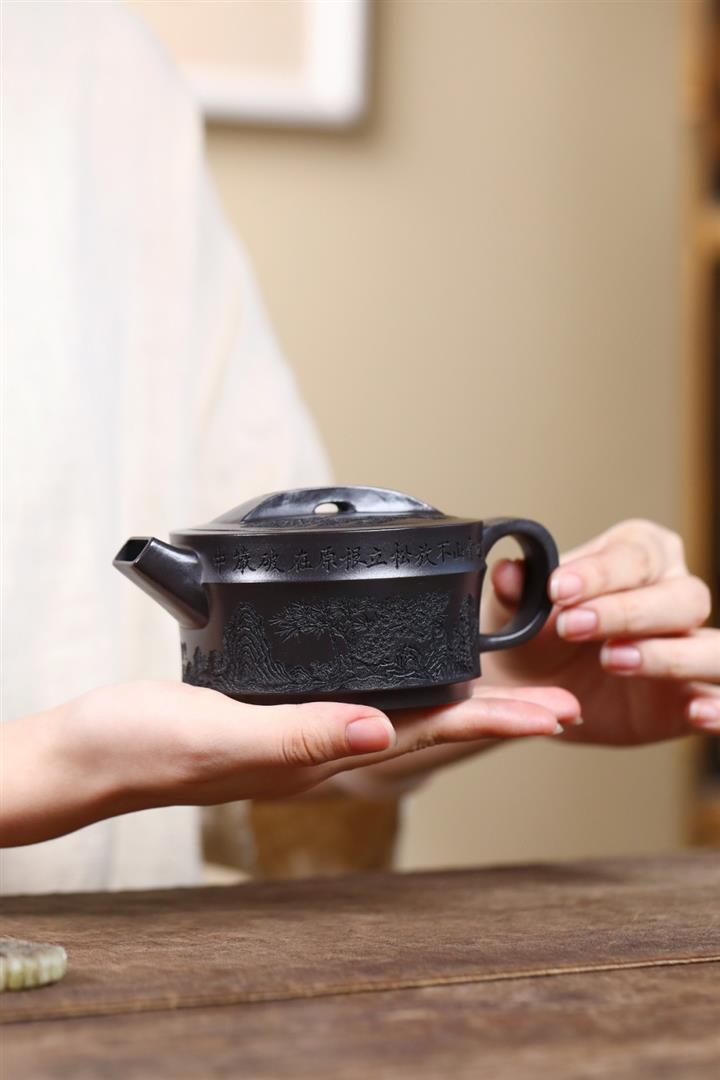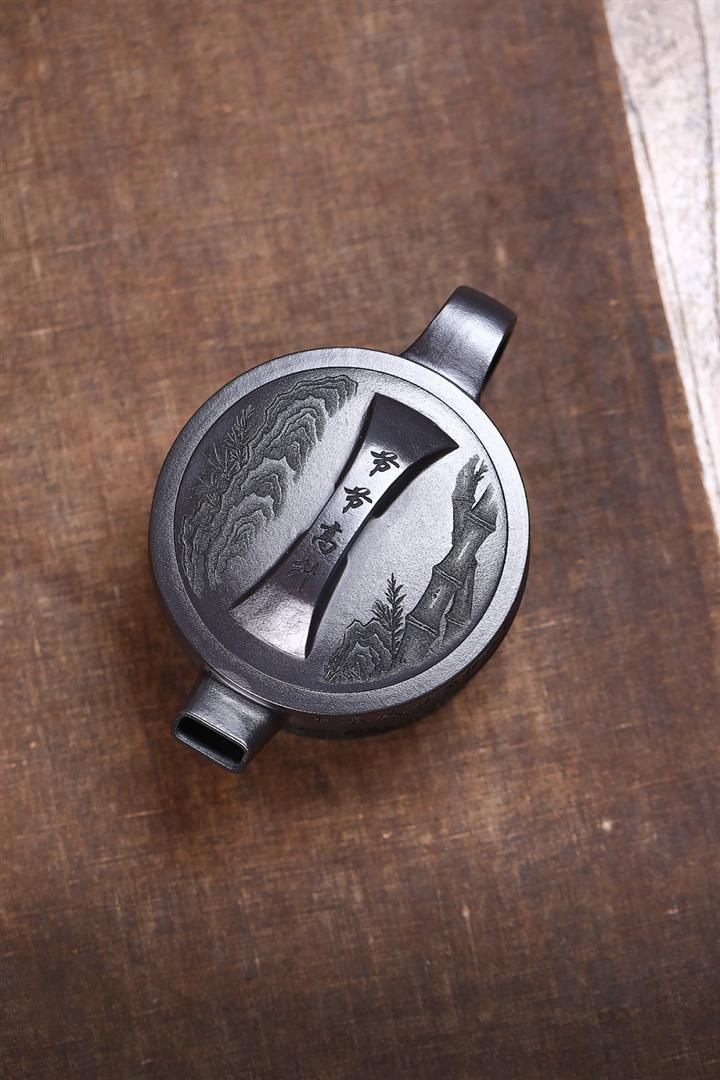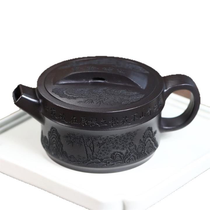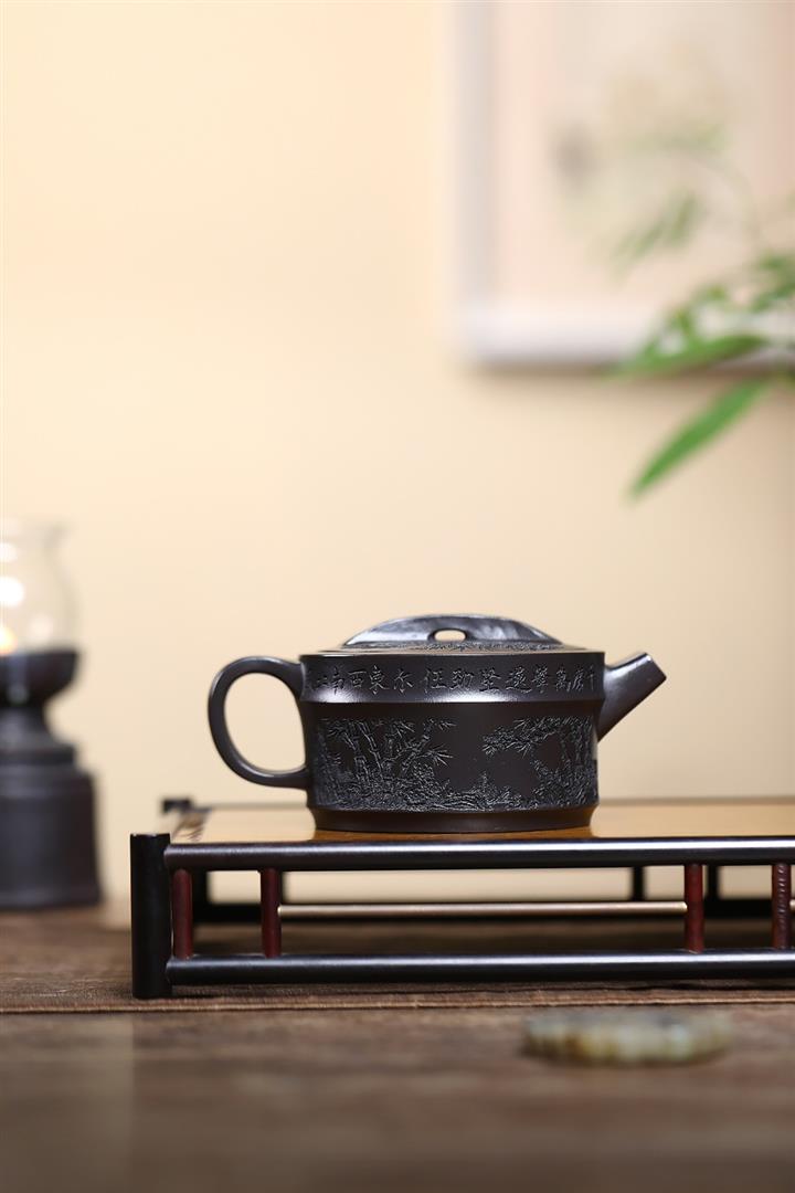 白段手繪刻繪秋水壺功夫泡茶壺紫砂壺 pot3388