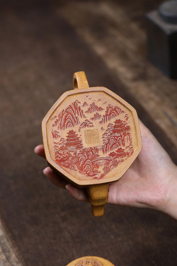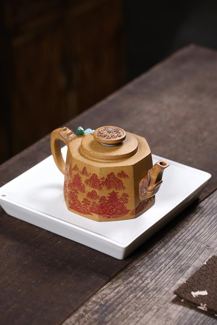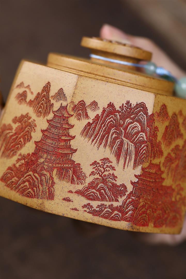 原礦雲霧沈香泥刻繪宮燈茶壺POT7108