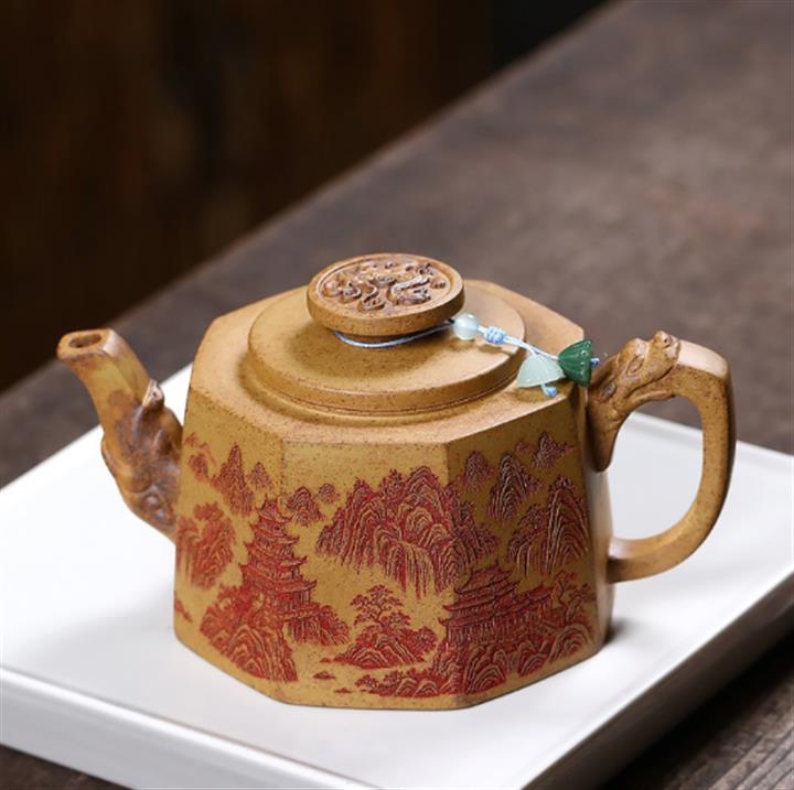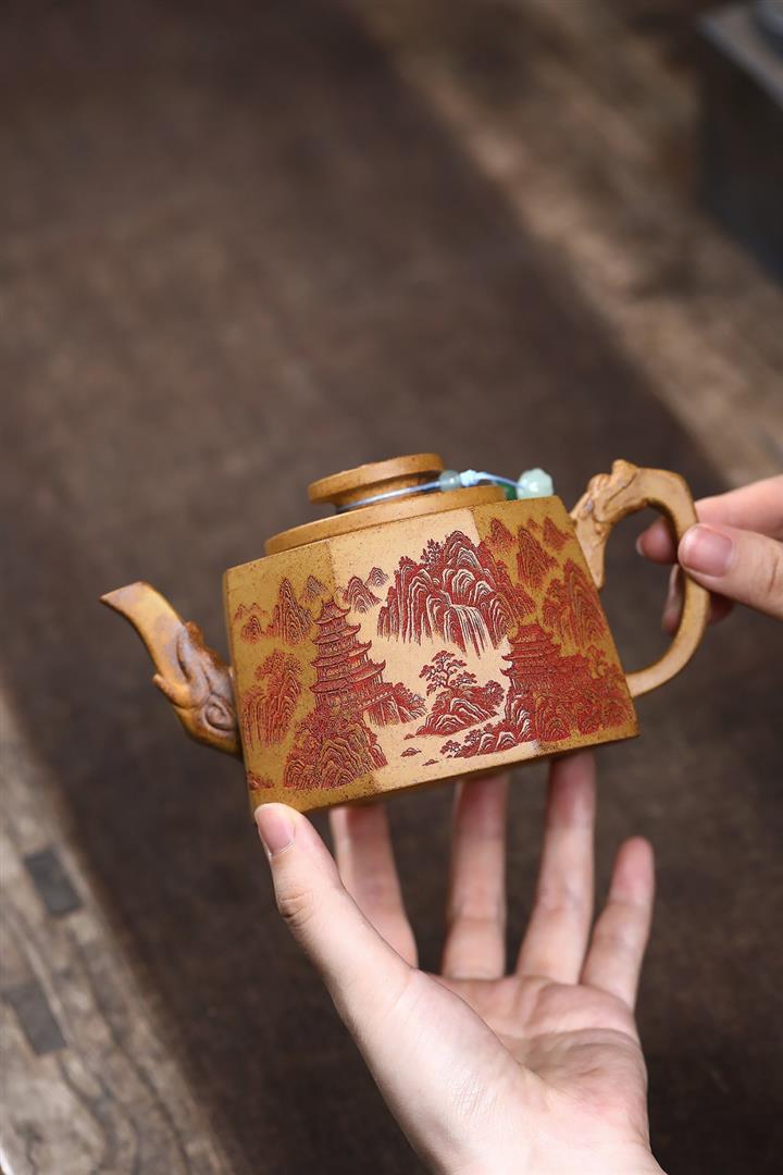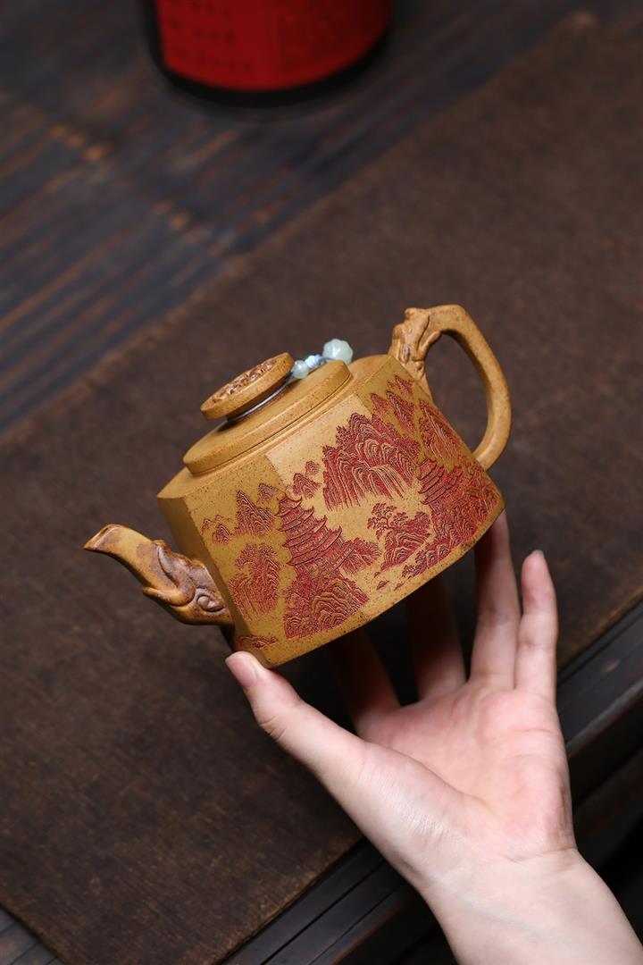 原礦龍骨金砂手工滿刻秦權茶壺POT7109
