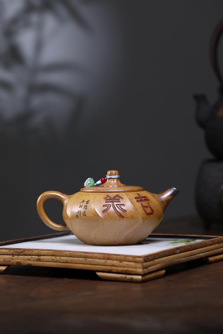 高端茶器百財石瓢茶壺原礦紫砂壺大紅袍pot3774