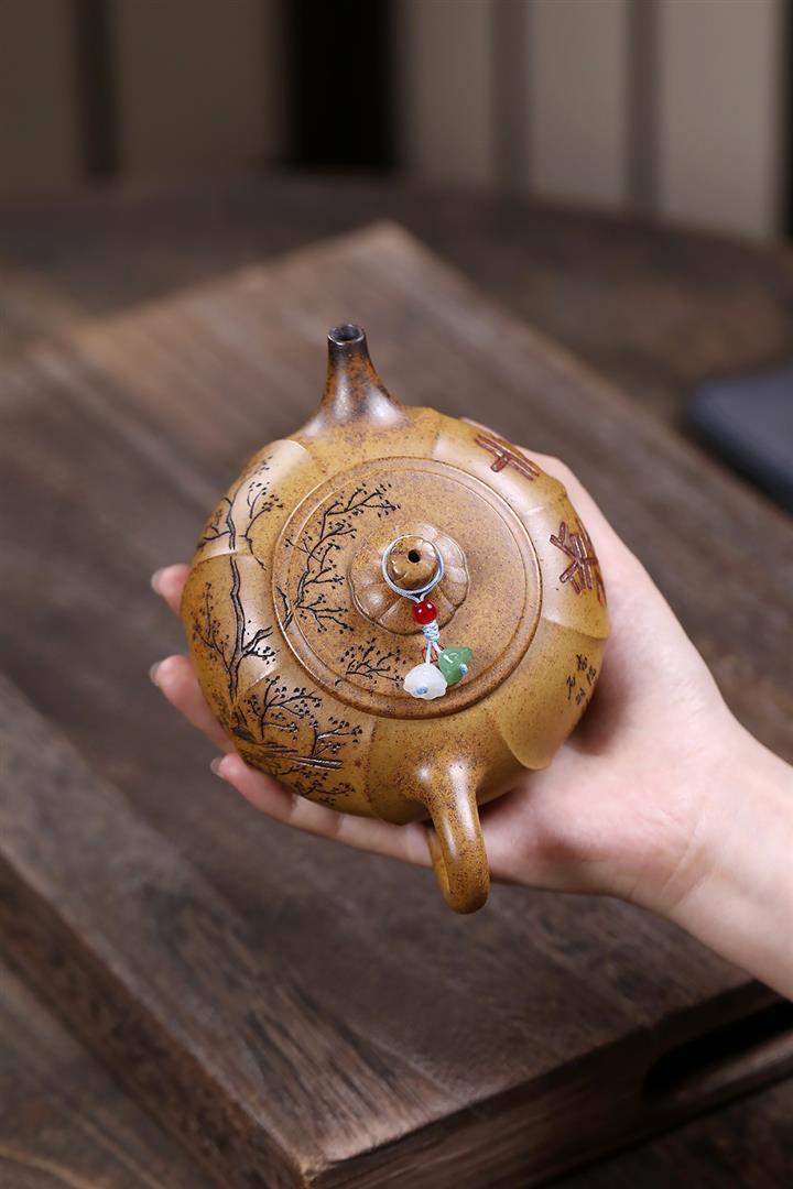 【作品介紹】此款壺形線條流暢,壺把,壺嘴,壺身壹氣呵成栩栩如生,是收藏把玩的好壺,泥料色澤古樸典雅,日久使用,漸露鋒芒,養成變化快,溫潤莊重,用其泡茶,使用的年代久,壺身就溫潤,泡出來的茶湯也就醇郁芳馨。