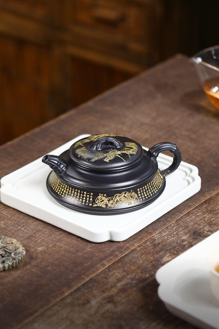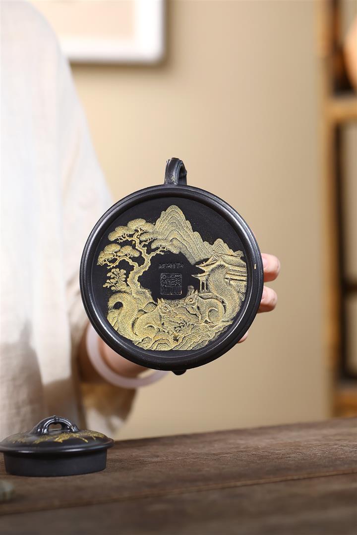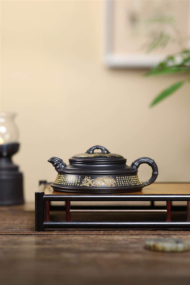 原礦天青泥金玉滿堂紫砂壺POT4387