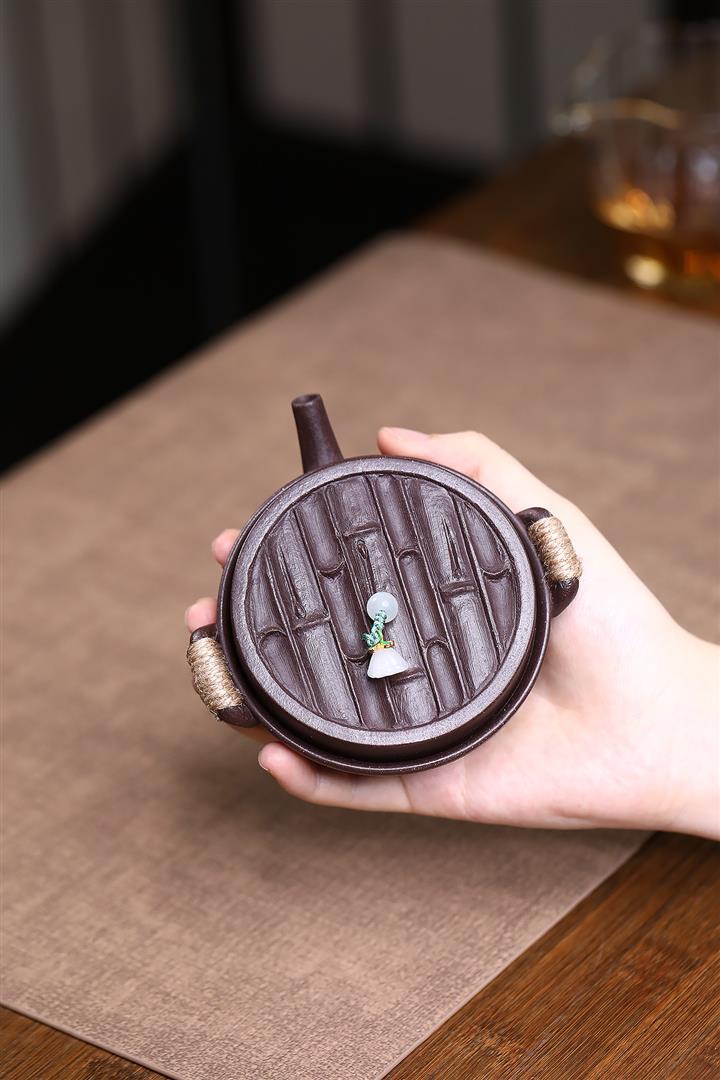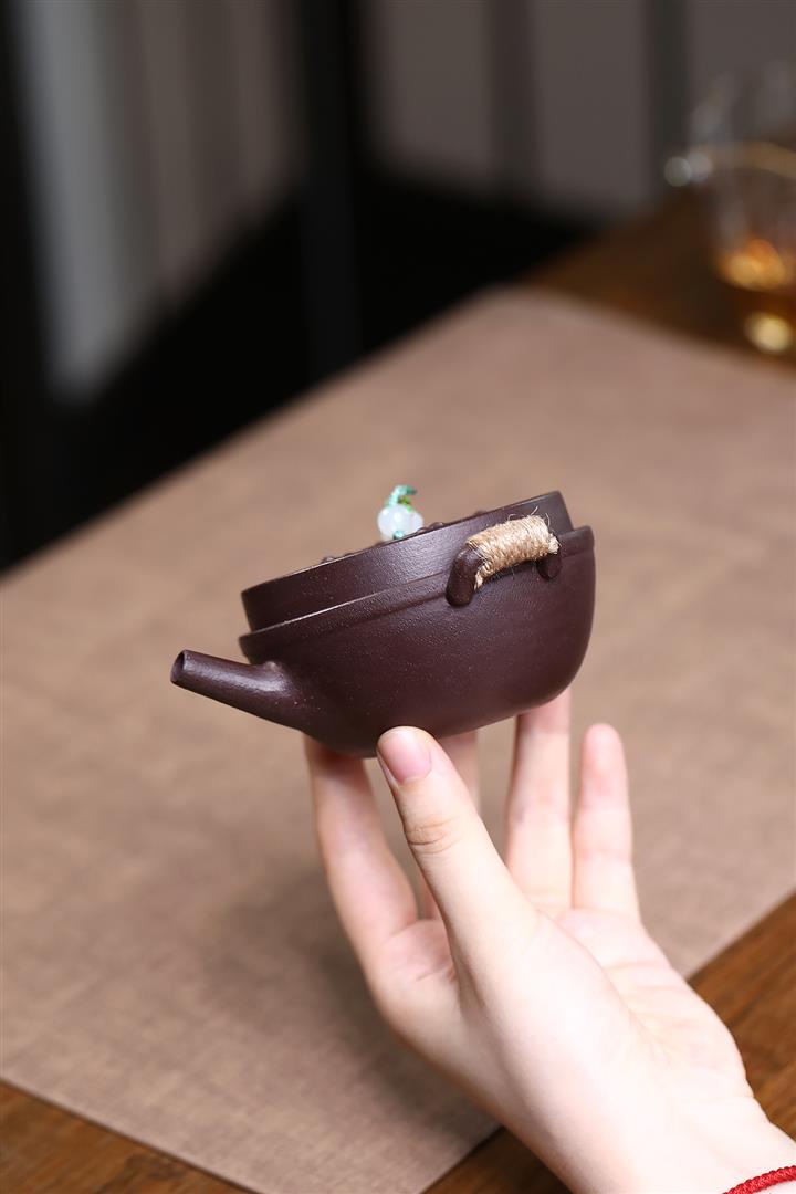 庚·高溫柴燒三足蓮年有余紫砂壺POT6423