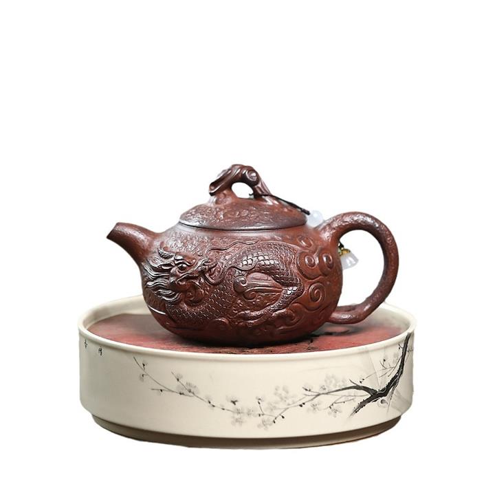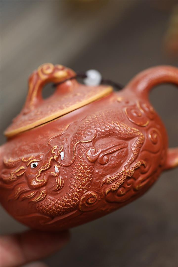 原礦紫朱泥手工刻繪山水龍蛋紫砂壺200cc POT3379