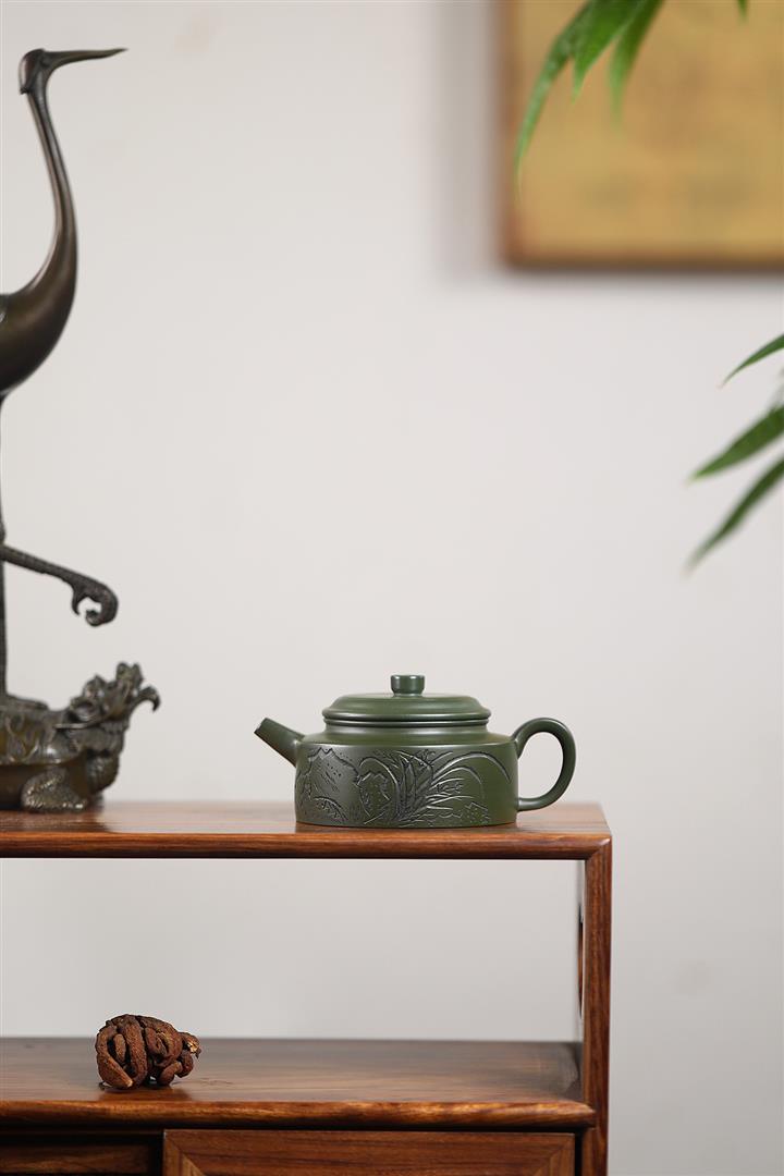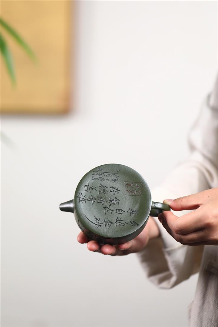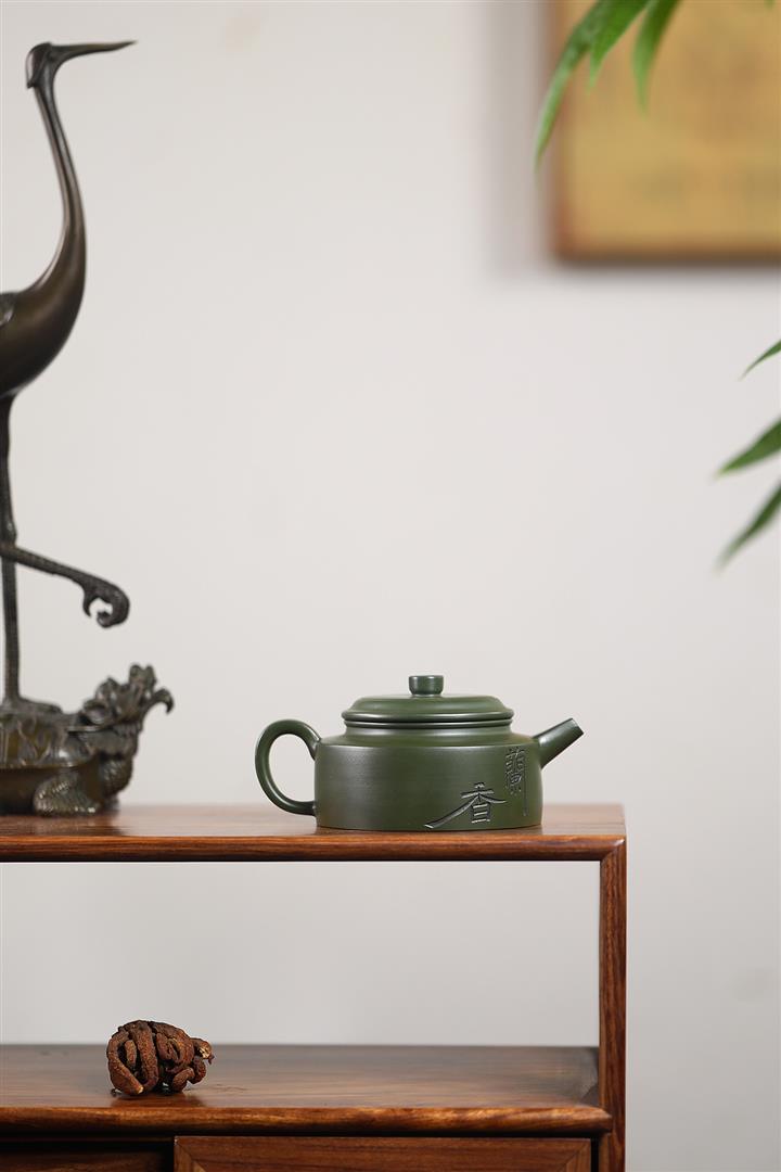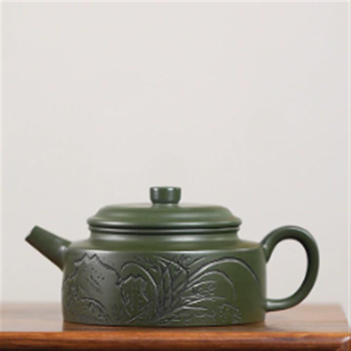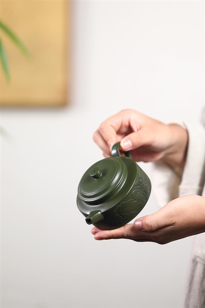 原礦綠泥滿刻三羊開胎茶壺POT7846