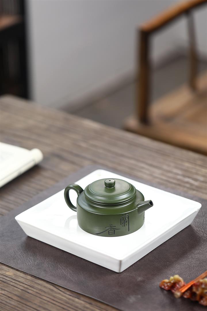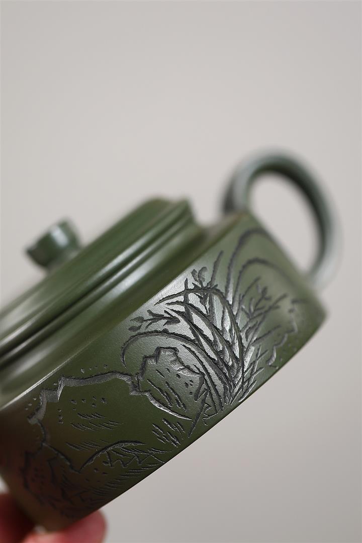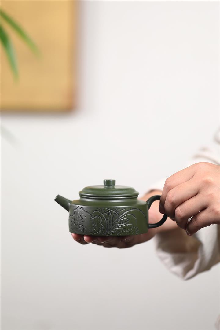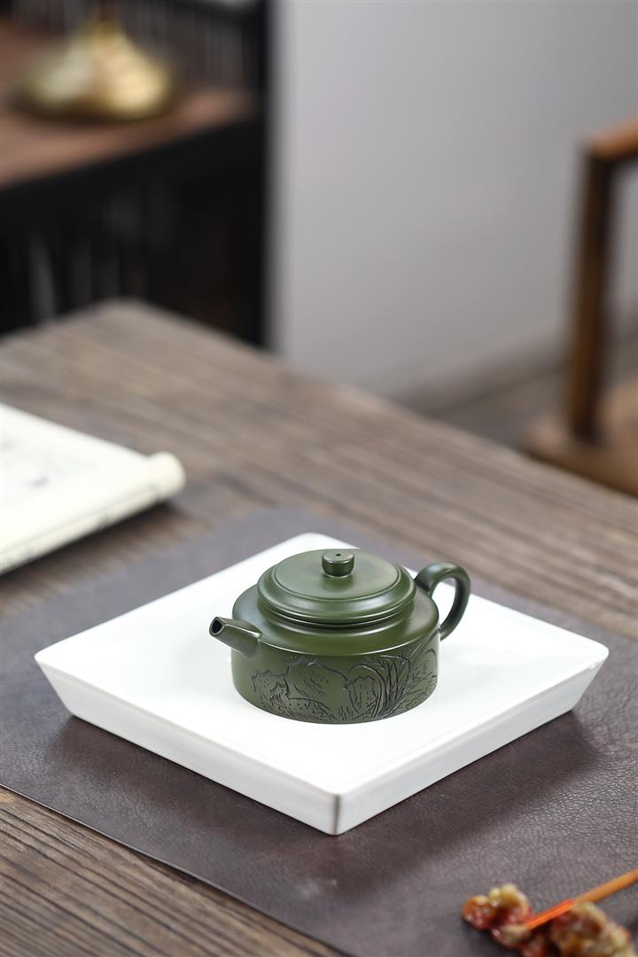 原礦綠泥滿刻三羊開胎茶壺POT7846