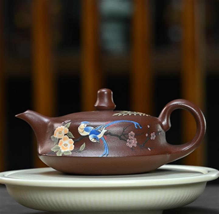 原礦紫泥枝雀泡茶壺花器擺件茶壺 Pot3525