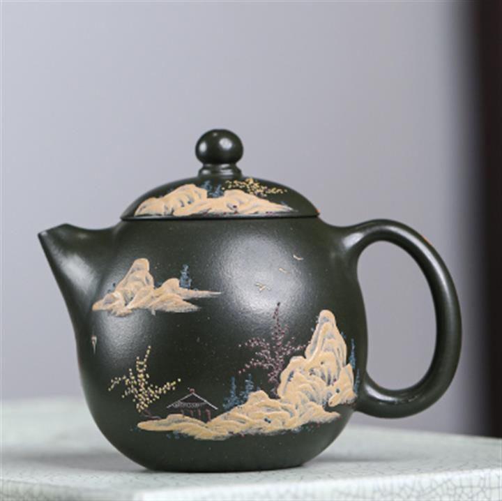 280cc原礦墨綠泥泥繪寒江茶壺POT8804