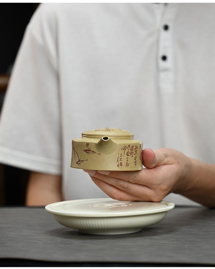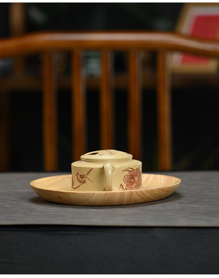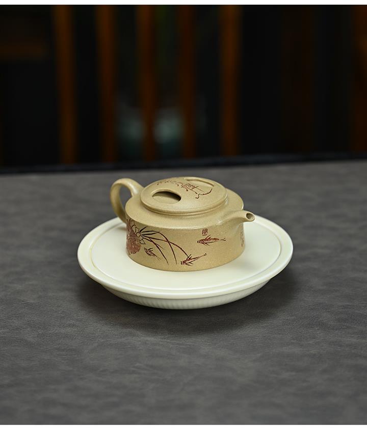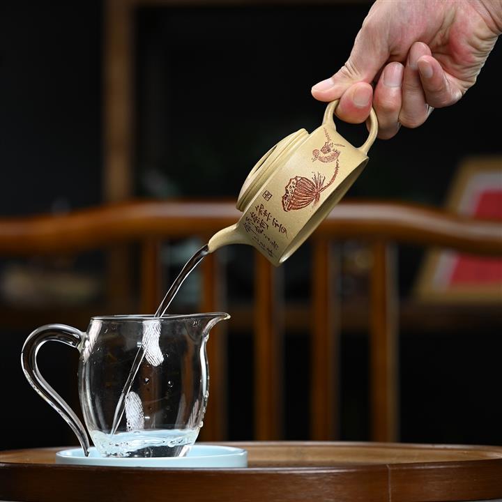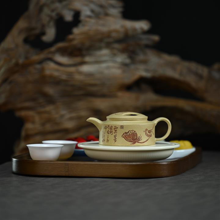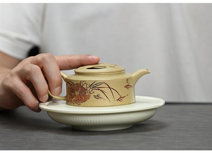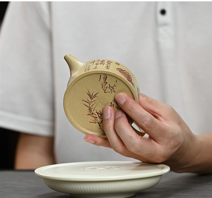 【泥料特點】砂土氣重,似淳實農民,日久使用,漸露鋒芒,養成變化,溫潤莊重。紫砂是壹種雙重氣孔結構的多孔性材質,氣孔微細,密度高。用紫砂壺沏茶,不失原味,且香不渙散,得茶之真香真味。紫砂使用越久,壺身色澤越發光亮照人,氣韻溫雅。紫砂壺長久使用器身會因撫摸擦拭,變得越發溫潤光澤。