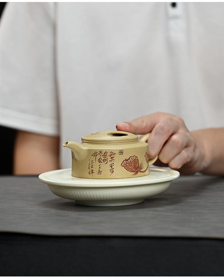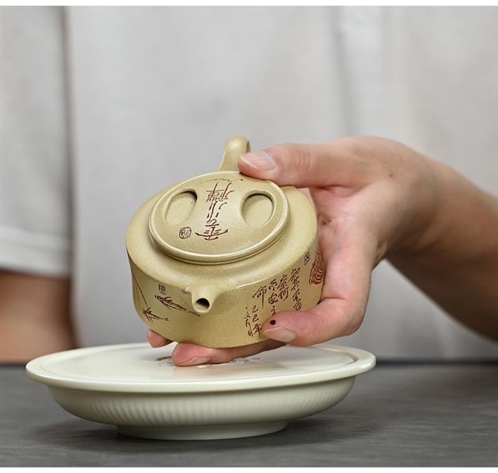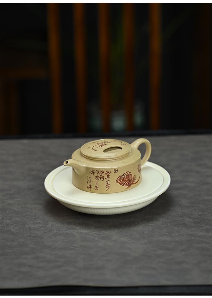 180cc原礦綠泥牛蓋刻繪茶壺POT8351
