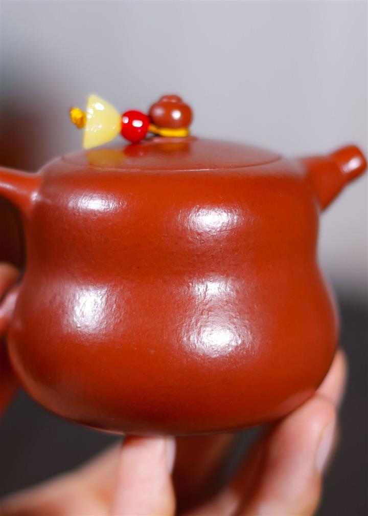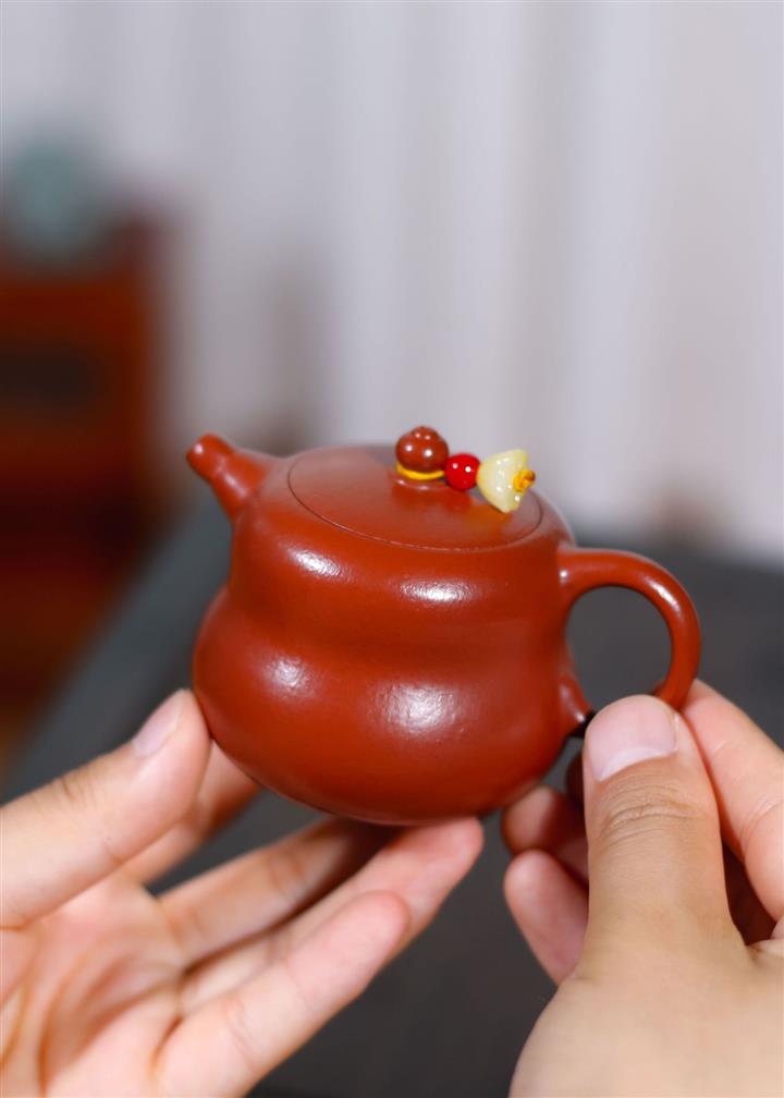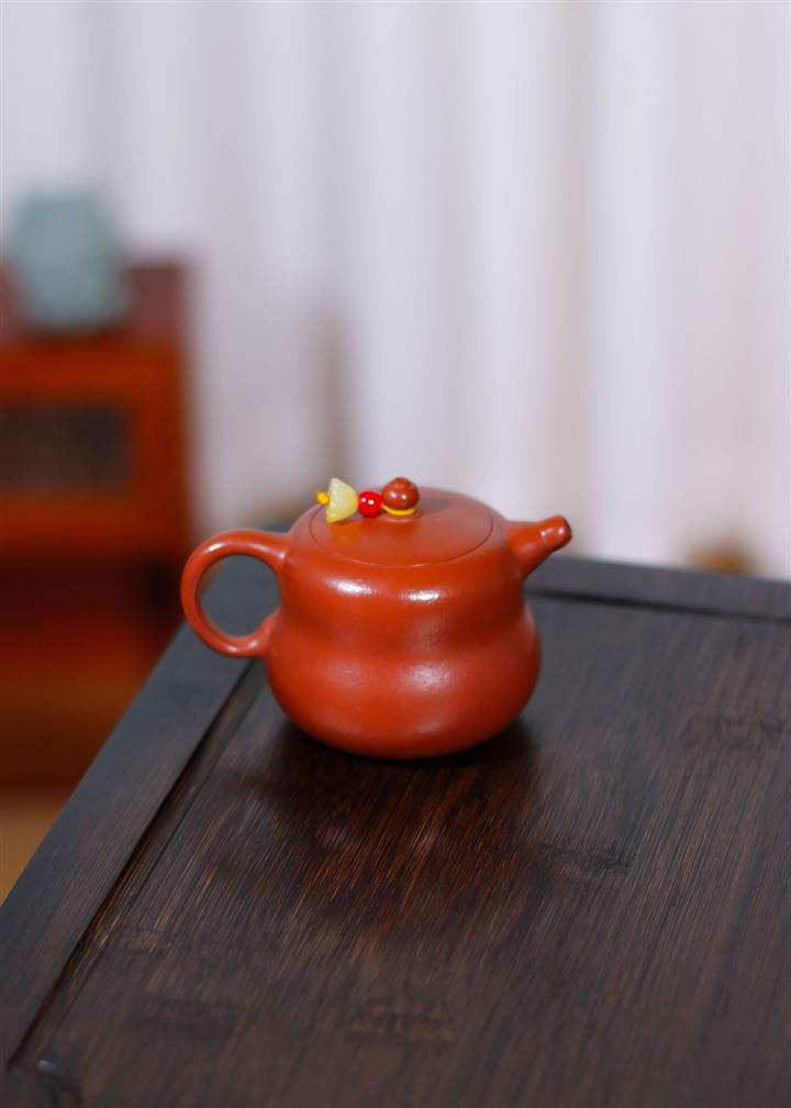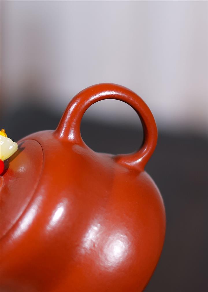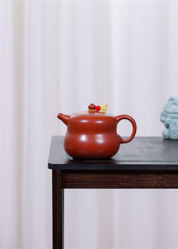 原礦大紅朱泥點金報春茶壺POT6829