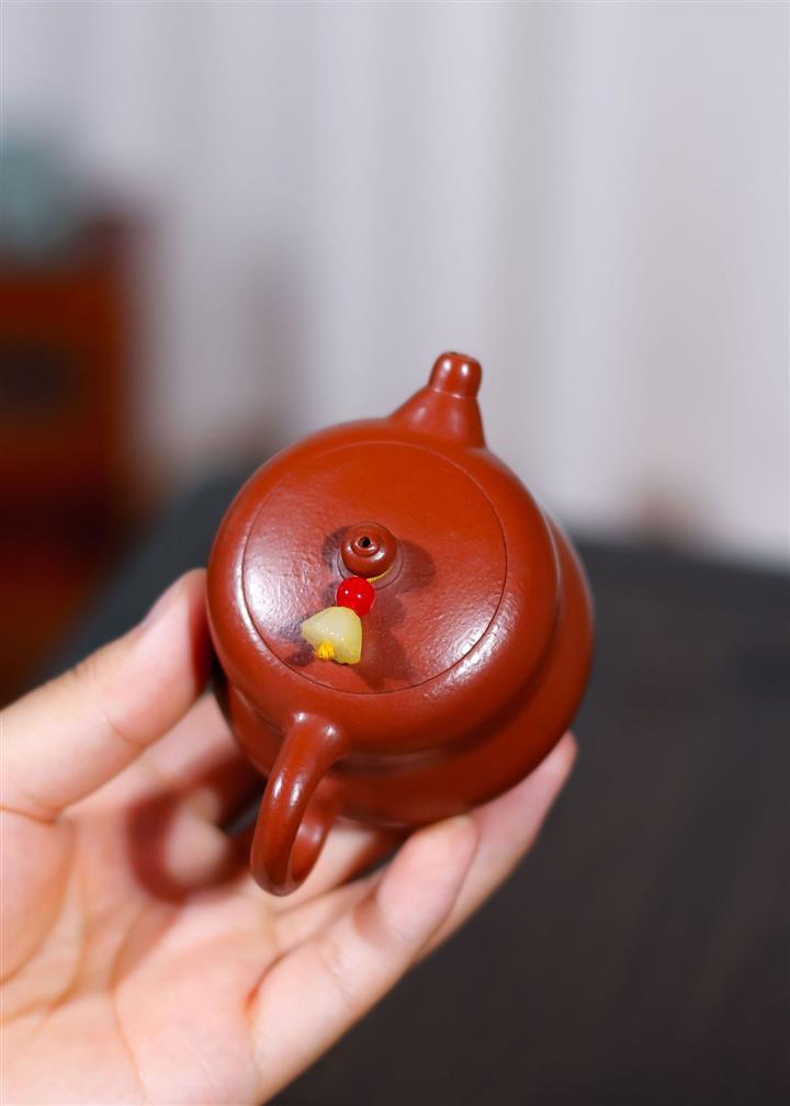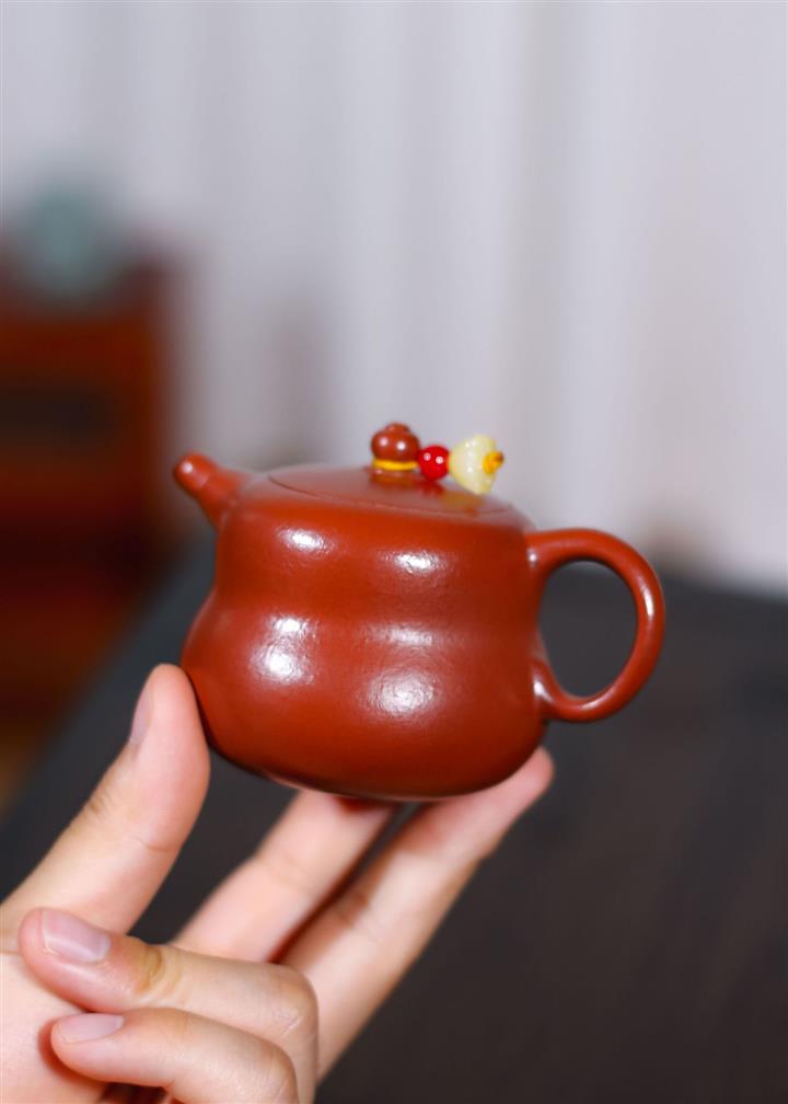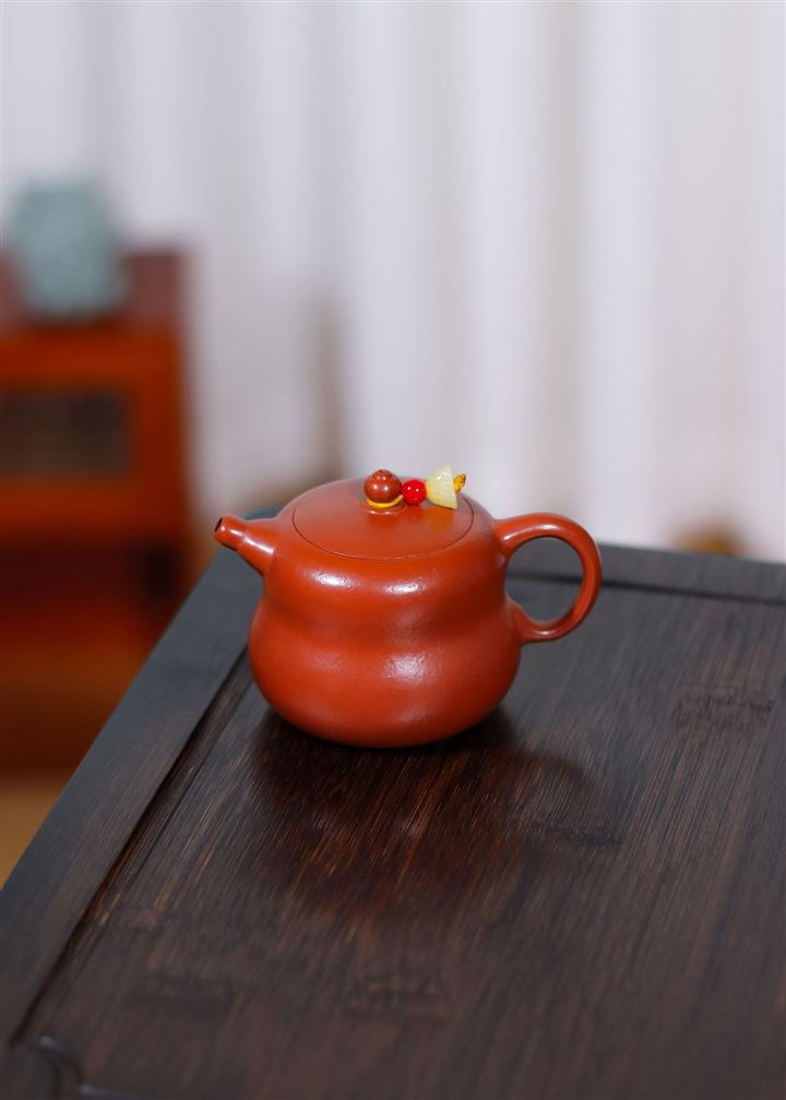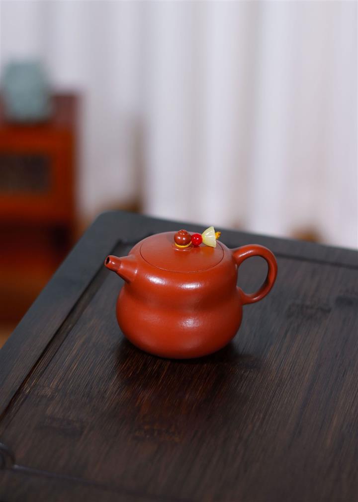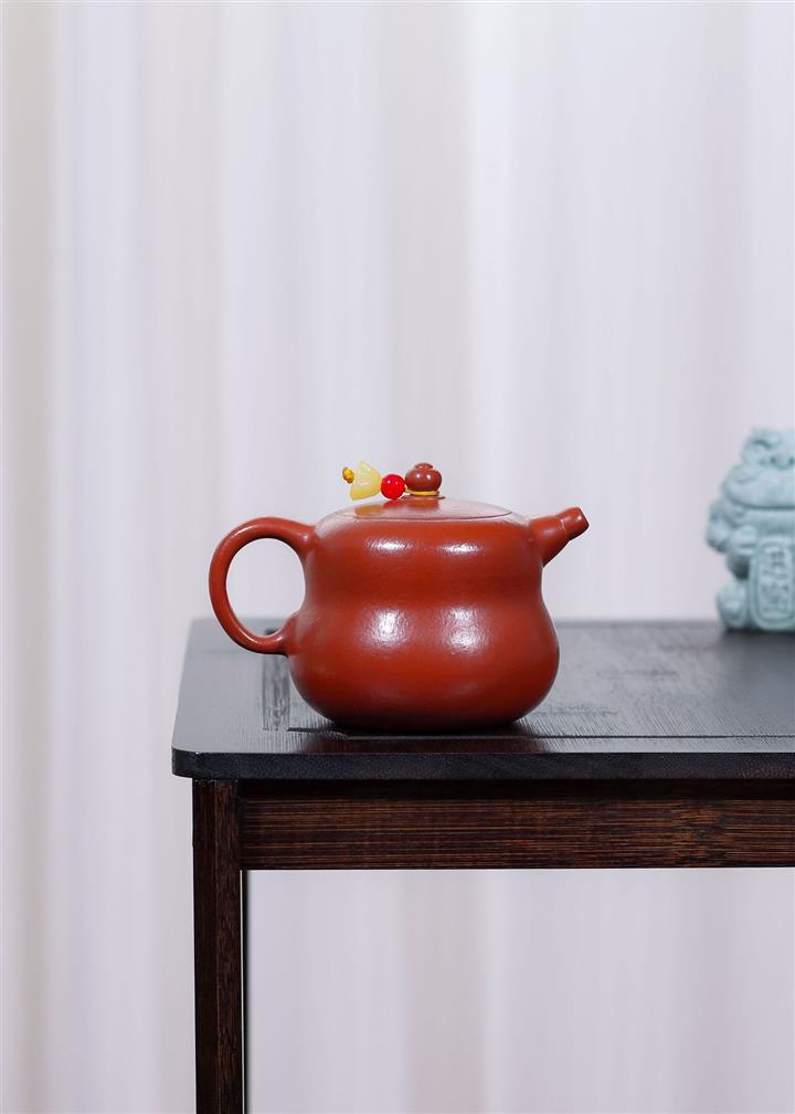 原礦大紅朱泥點金報春茶壺POT6829
