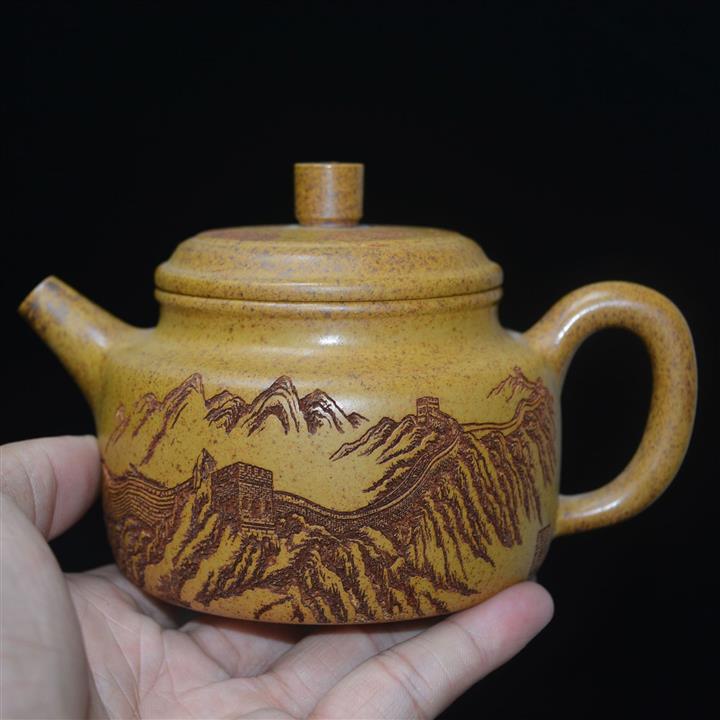 300cc原礦高溫段泥刻繪長城德鐘茶壺POT8389