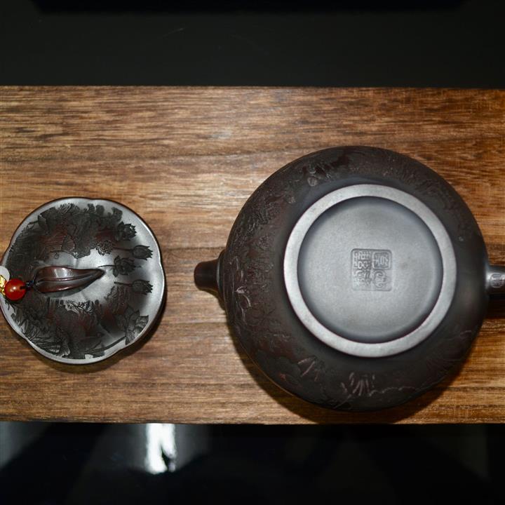 精金黃老段泥太湖竹韻紫砂壺POT5733