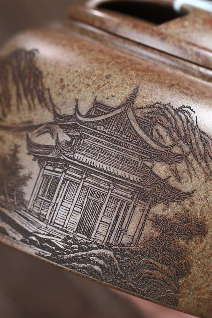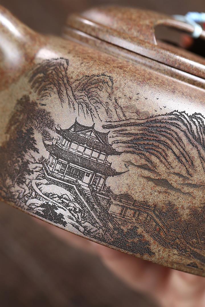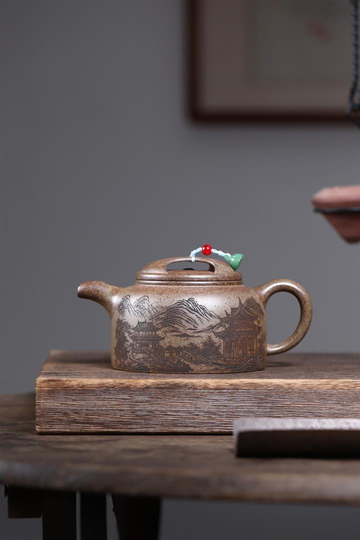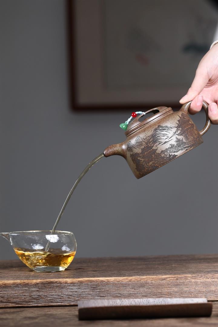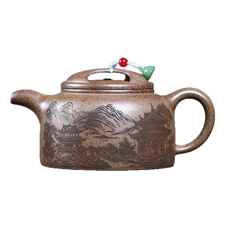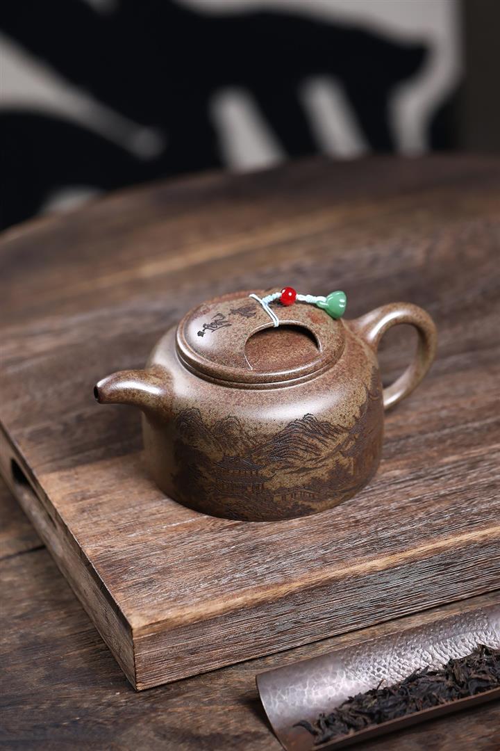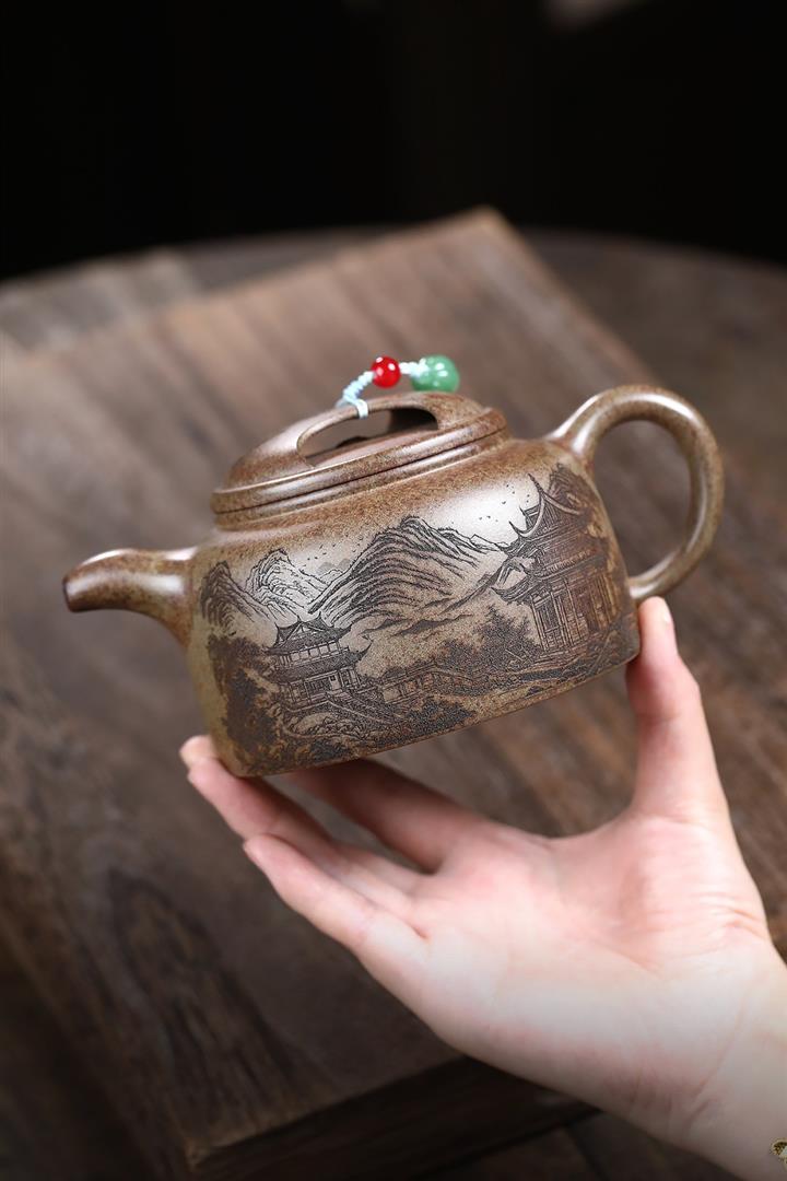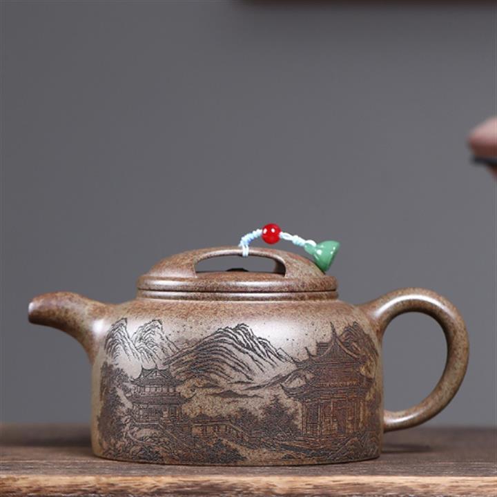 原礦百目紫泥手工描金寒江茶壺POT7071