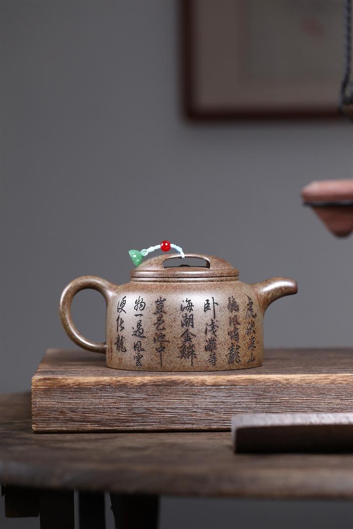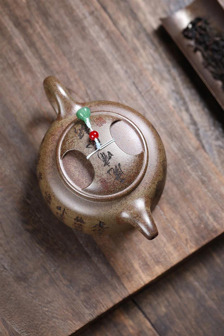 【泥料特點】砂土氣重,似淳實農民,日久使用,漸露鋒芒,養成變化,溫潤莊重。紫砂是壹種雙重氣孔結構的多孔性材質,氣孔微細,密度高。用紫砂壺沏茶,不失原味,且香不渙散,得茶之真香真味。紫砂使用越久,壺身色澤越發光亮照人,氣韻溫雅。紫砂壺長久使用器身會因撫摸擦拭,變得越發溫潤光澤。