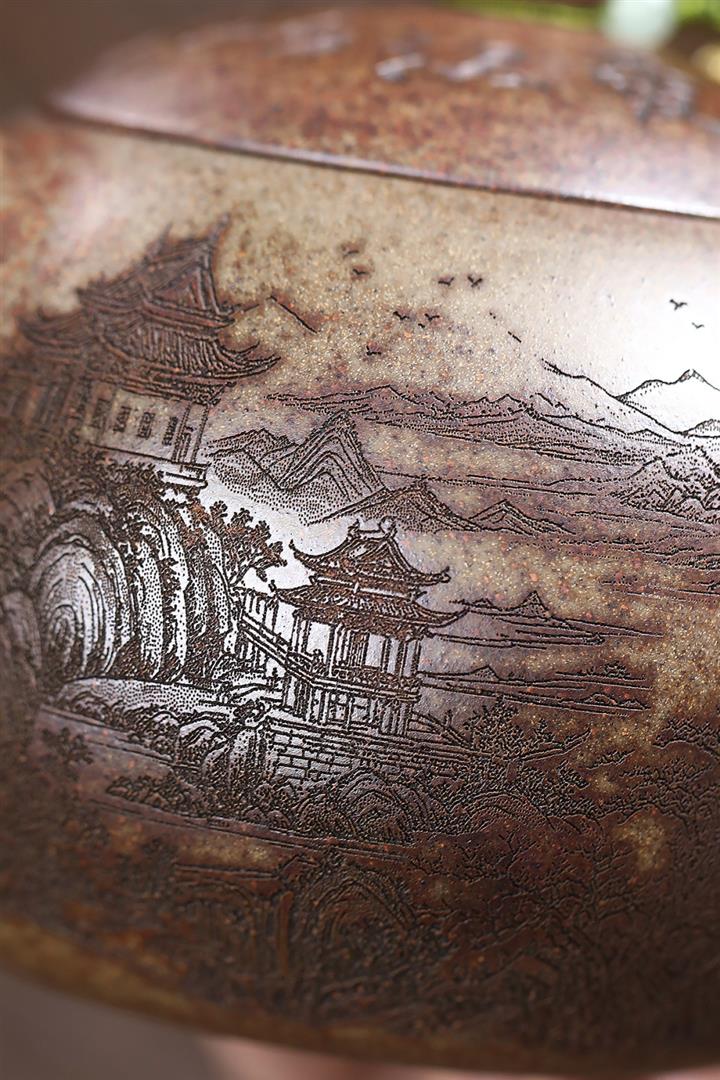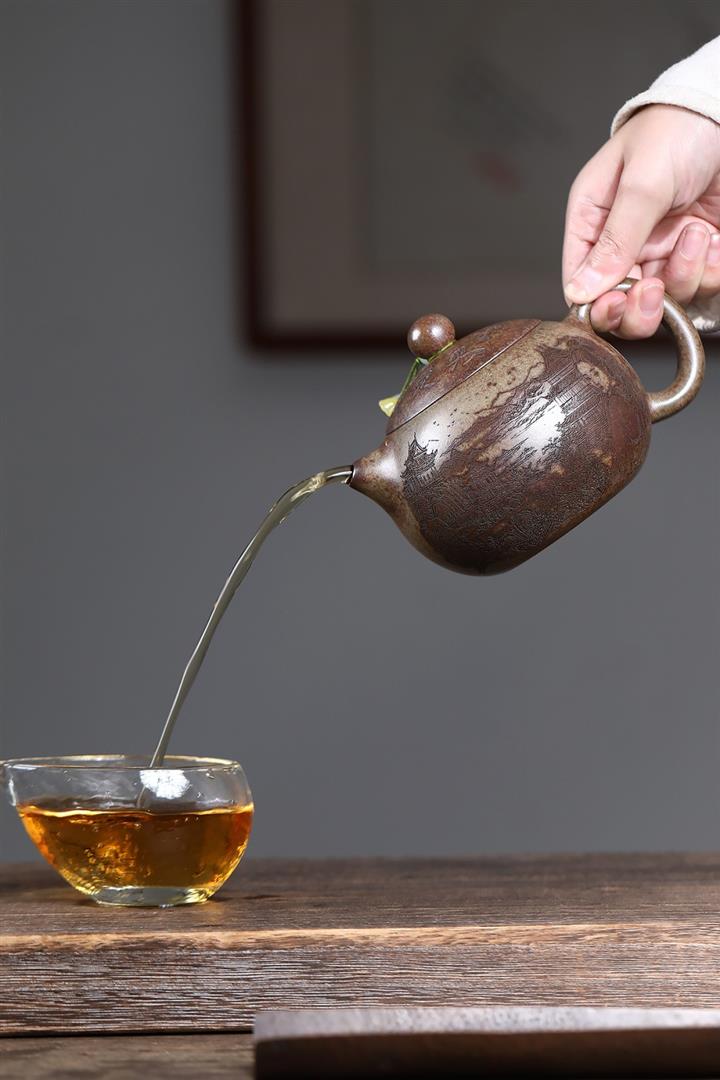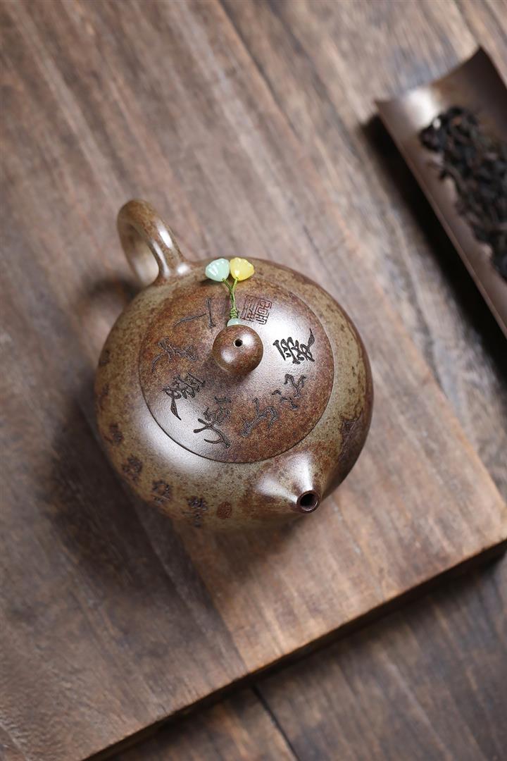 【泥料特點】砂土氣重,似淳實農民,日久使用,漸露鋒芒,養成變化,溫潤莊重。紫砂是壹種雙重氣孔結構的多孔性材質,氣孔微細,密度高。用紫砂壺沏茶,不失原味,且香不渙散,得茶之真香真味。紫砂使用越久,壺身色澤越發光亮照人,氣韻溫雅。紫砂壺長久使用器身會因撫摸擦拭,變得越發溫潤光澤。