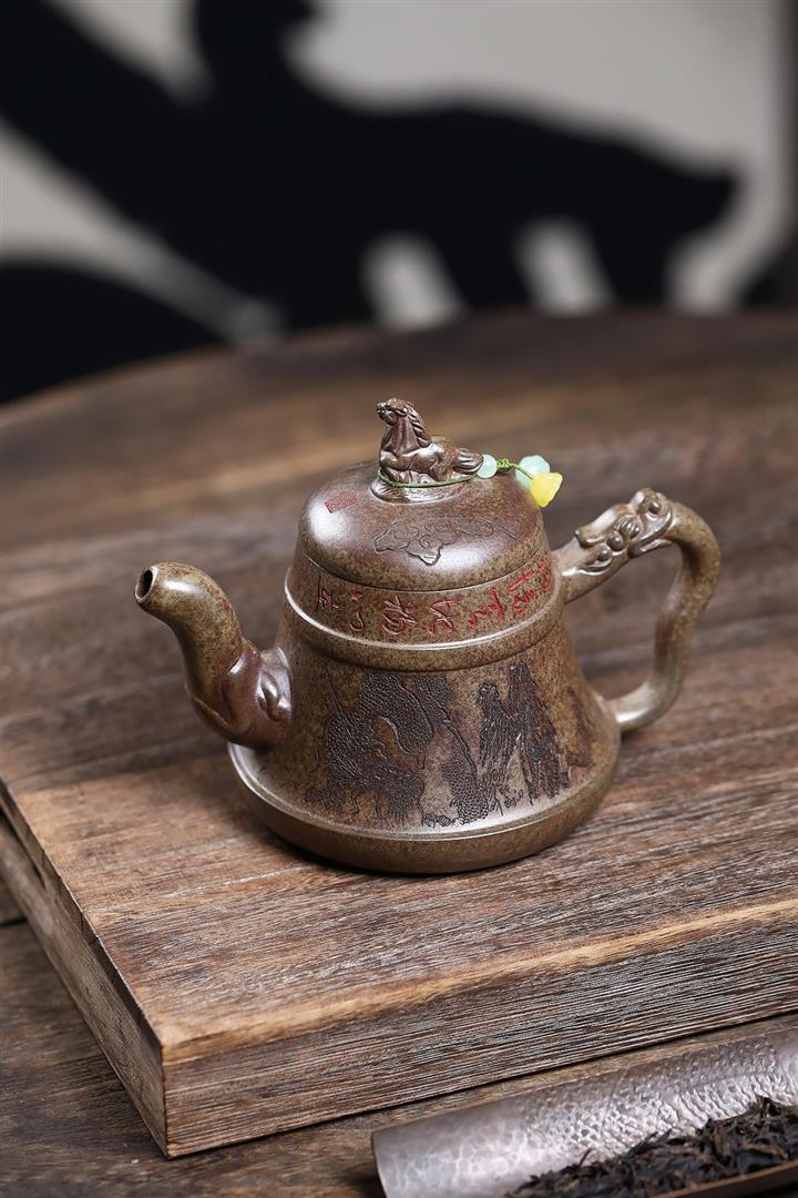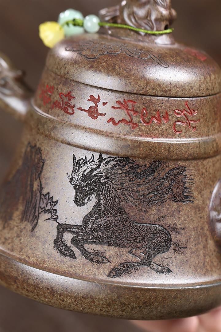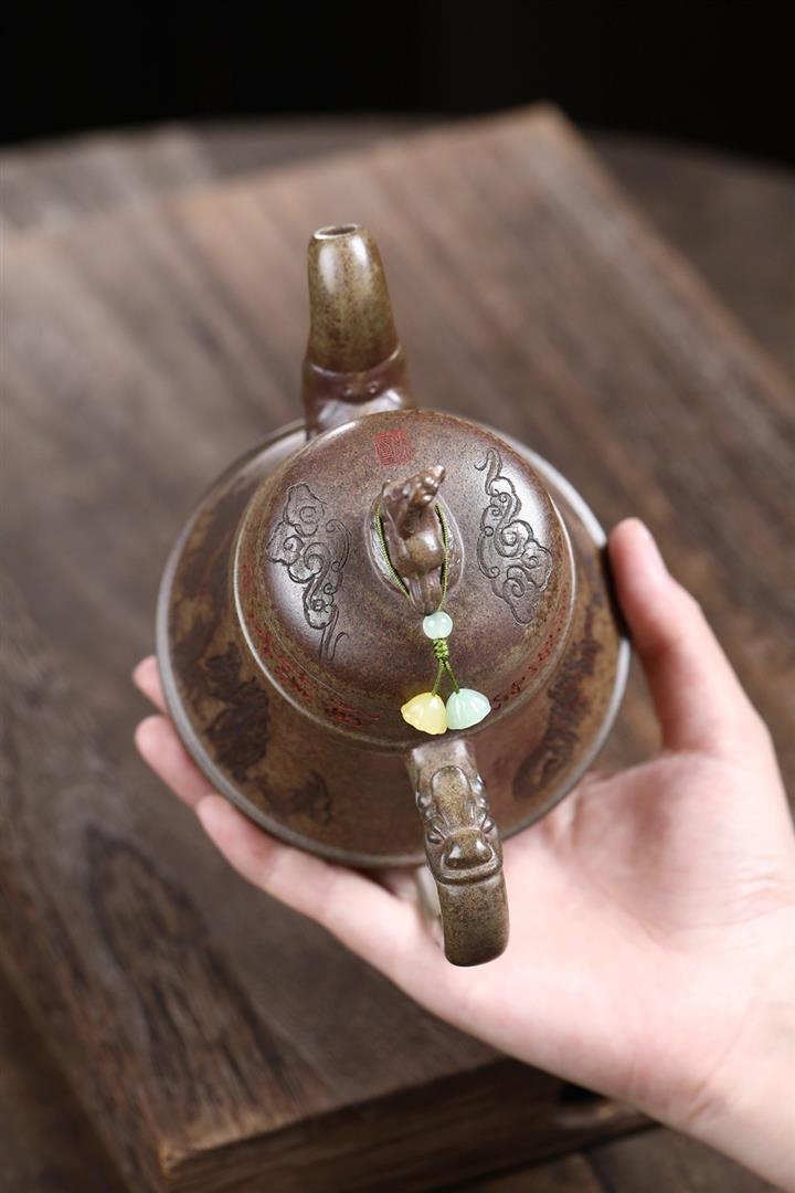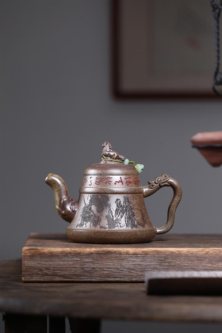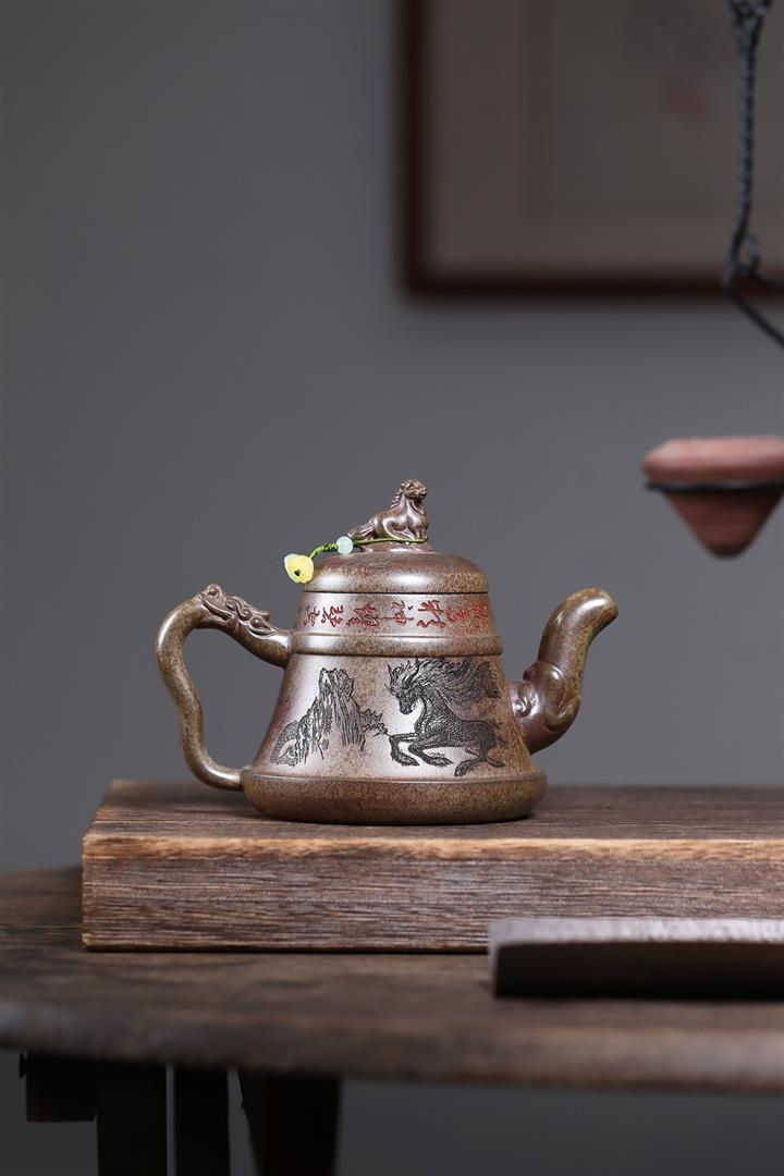 420cc原礦沈香泥柴燒墨龍逸駿茶壺POT8432
